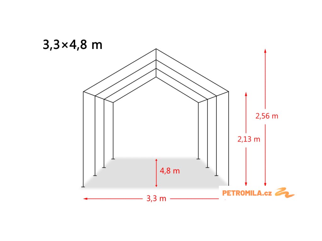 - Rozměry: 3,3 x 4,8 x 2,56 m (D x Š x V)