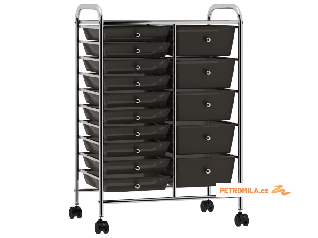 Mobilní úložný vozík s 15 zásuvkami černý plastový