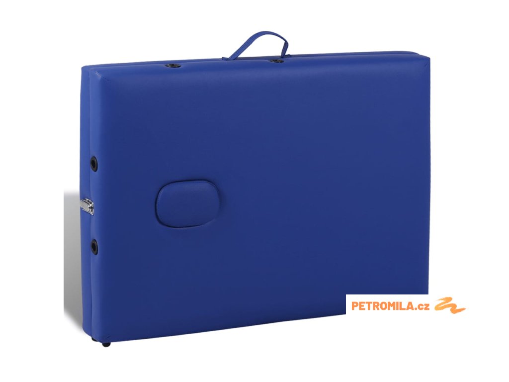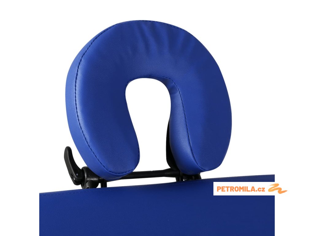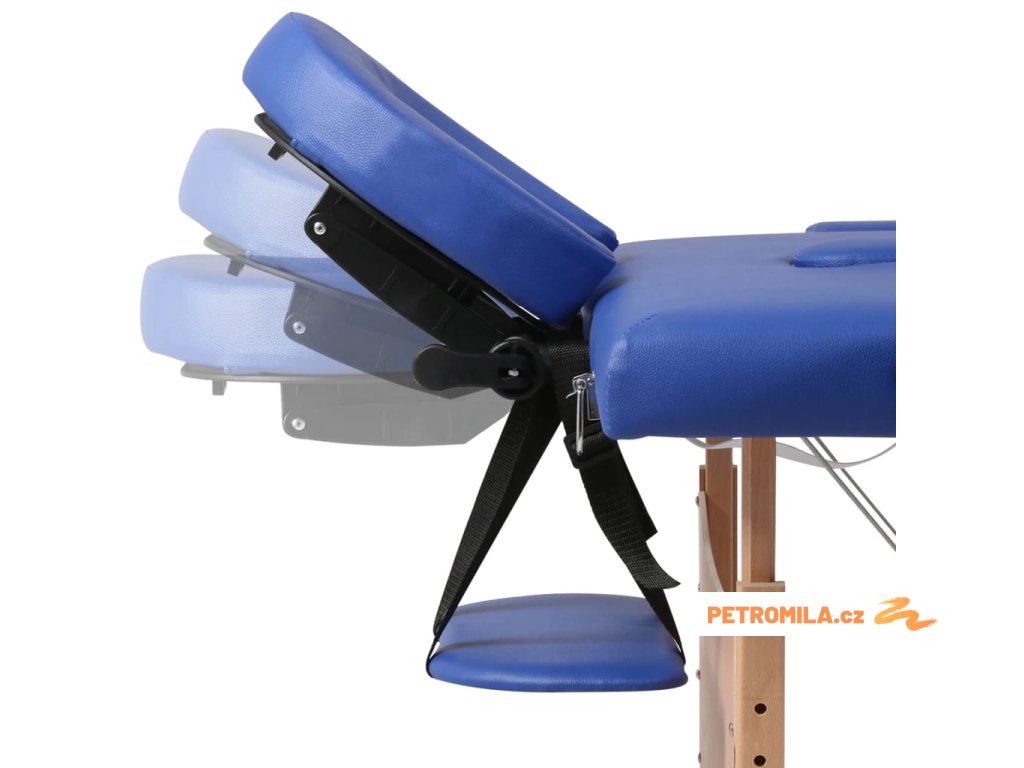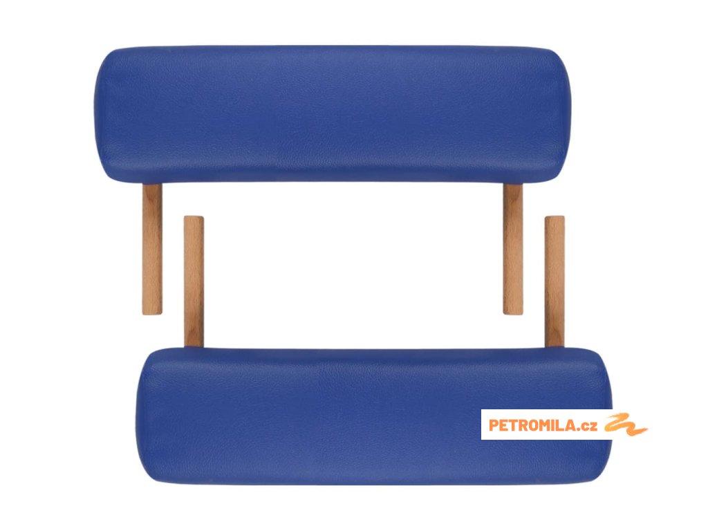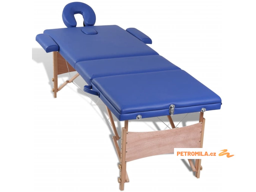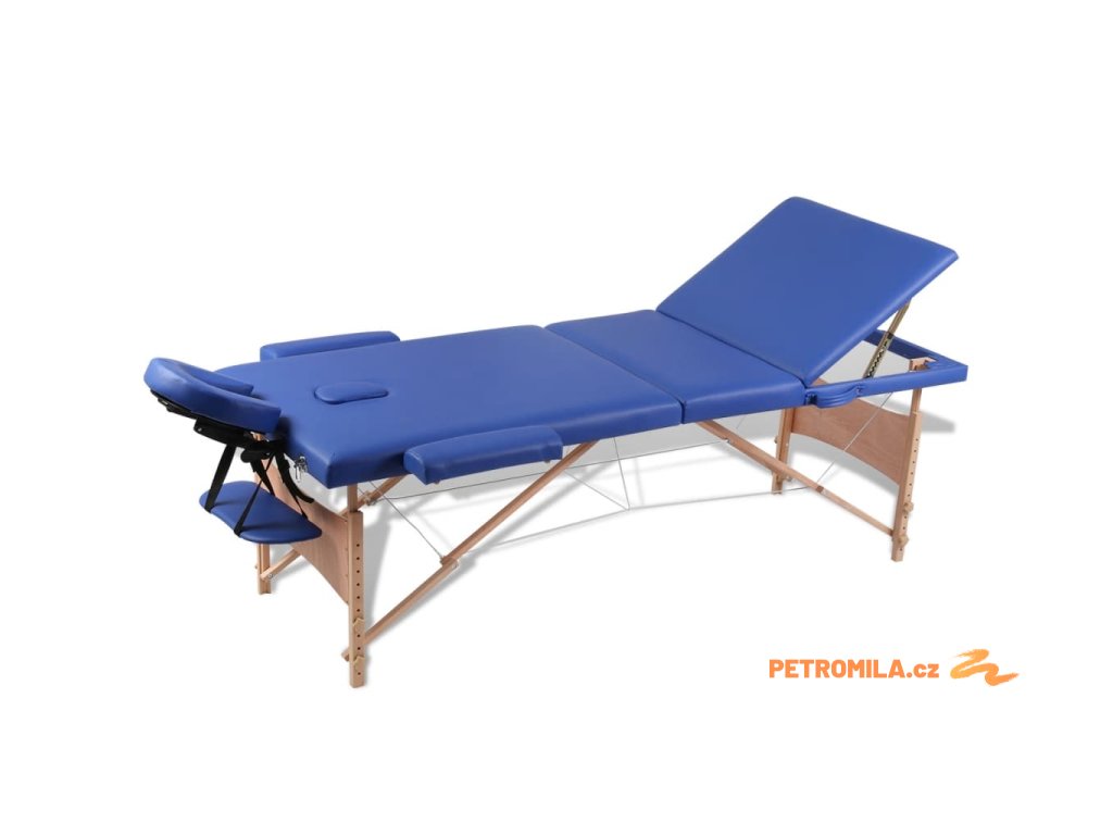 Modrý skládací masážní stůl se 3 zónami a dřevěným rámem