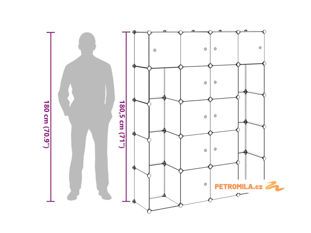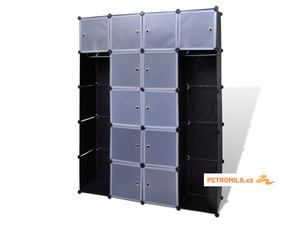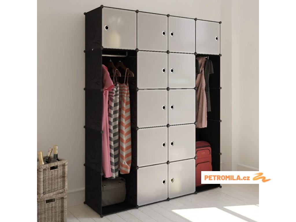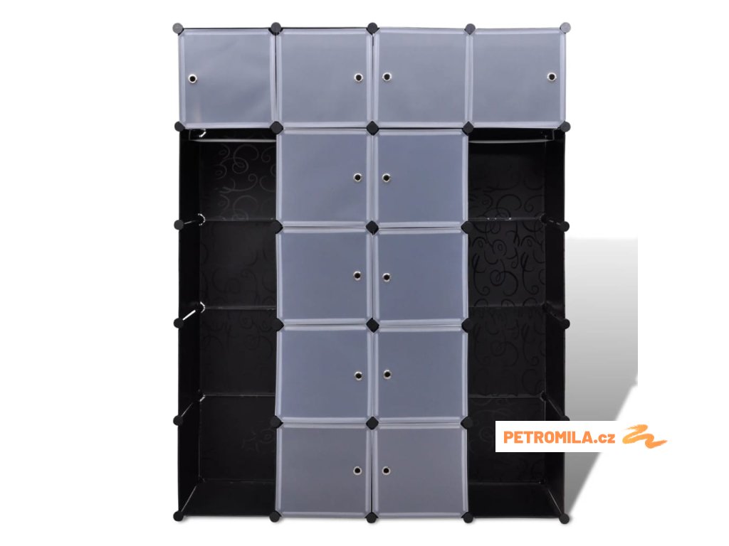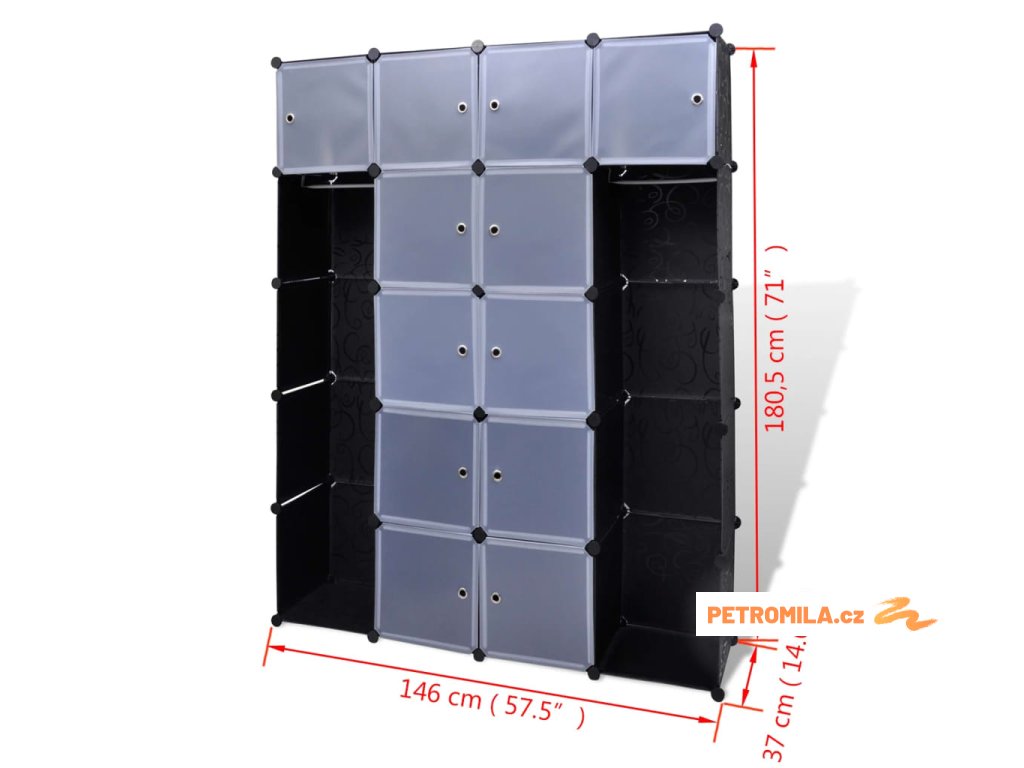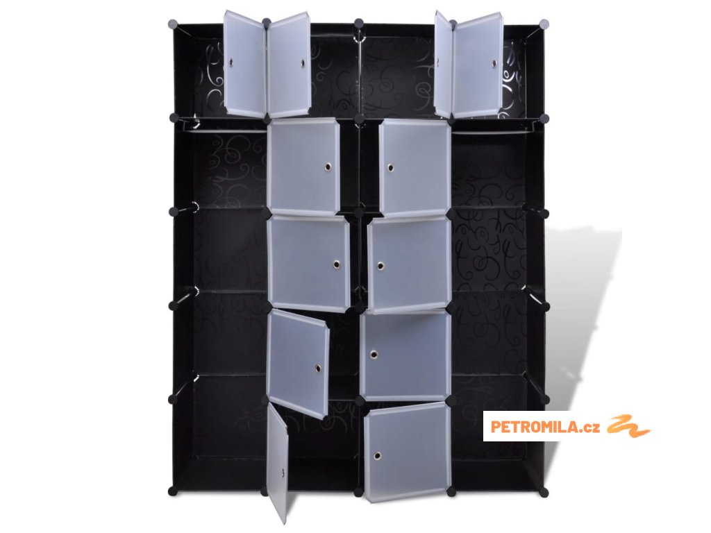 Modulární skříň se 14 přihrádkami černobílá 37 x 146 x 180,5 cm