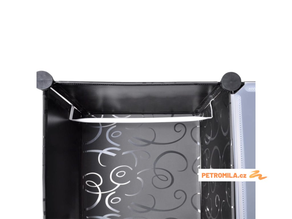 Šatník je vyroben z plastových elementů a chromovaného ocelového drátu, takže se snadno čistí. Vzhledem ke svému promyšlenému designu se skříň dá snadno a rychle složit v různém uspořádání, aby se přizpůsobila prostoru nebo vaší náladě.