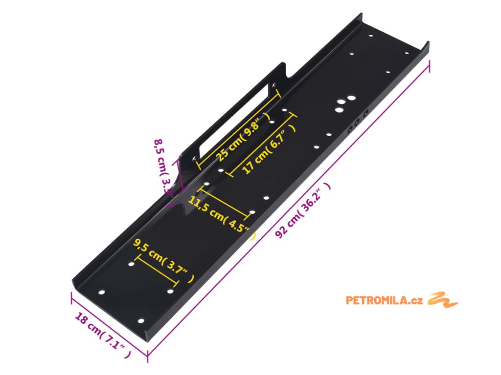 Montážní deska je vyrobena z odolné oceli s práškovým nástřikem, a tudíž nerezaví ani nepodléhá klimatickým vlivům. Četné a různě velké otvory vám umožní k základní desce snadno připevnit naviják, abyste měli spolehlivou provozní plošinu. Deska se vyznačuje svým kompaktním a pevným designem, který nabízí bezpečnou podporu. Navíc je univerzální a kompatibilní se všemi běžnými elektrickými navijáky od výrobců, jako jsou Black Motion, Raw Machine, WARN, Superwinch, Horn, Ramsey atd.