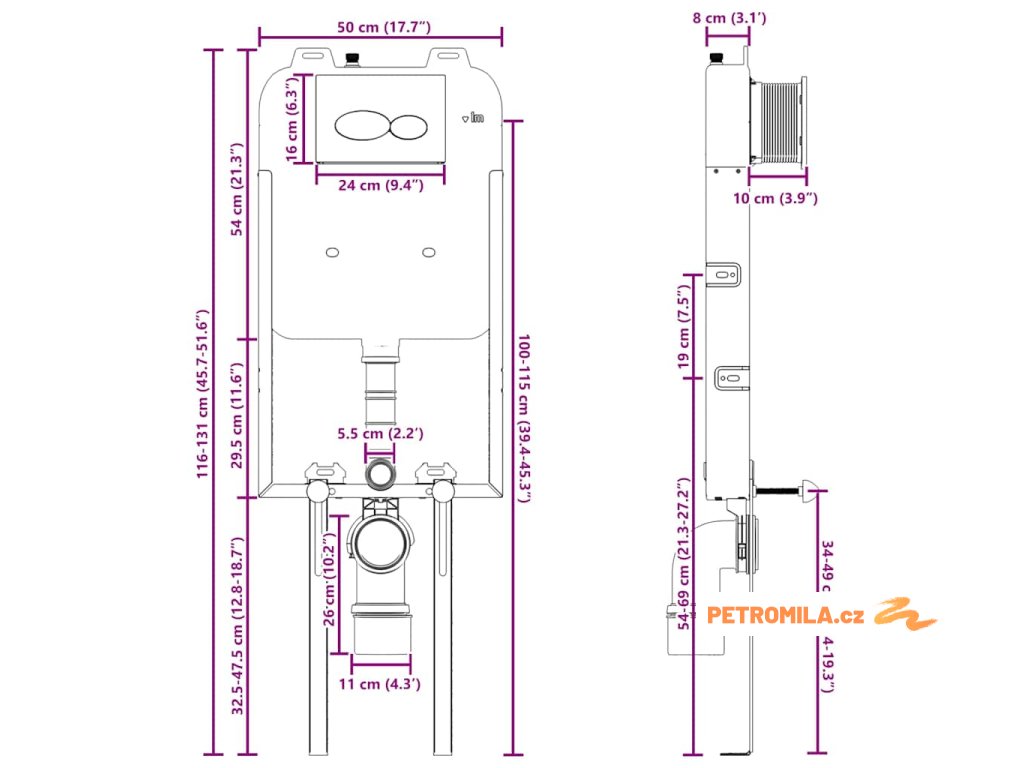 - Součásti: Obsahuje jeden rám navržený pro skryté cisterny. Není potřeba žádné další součásti, což z něj dělá ideální volbu pro minimalistické koupelny.
