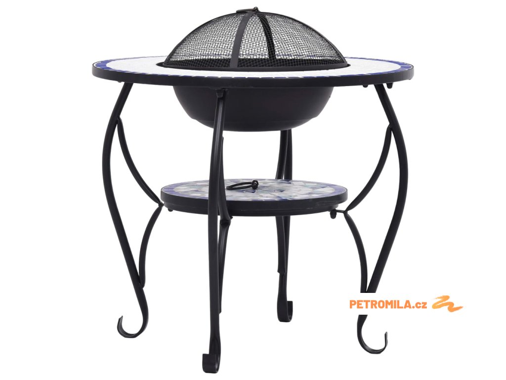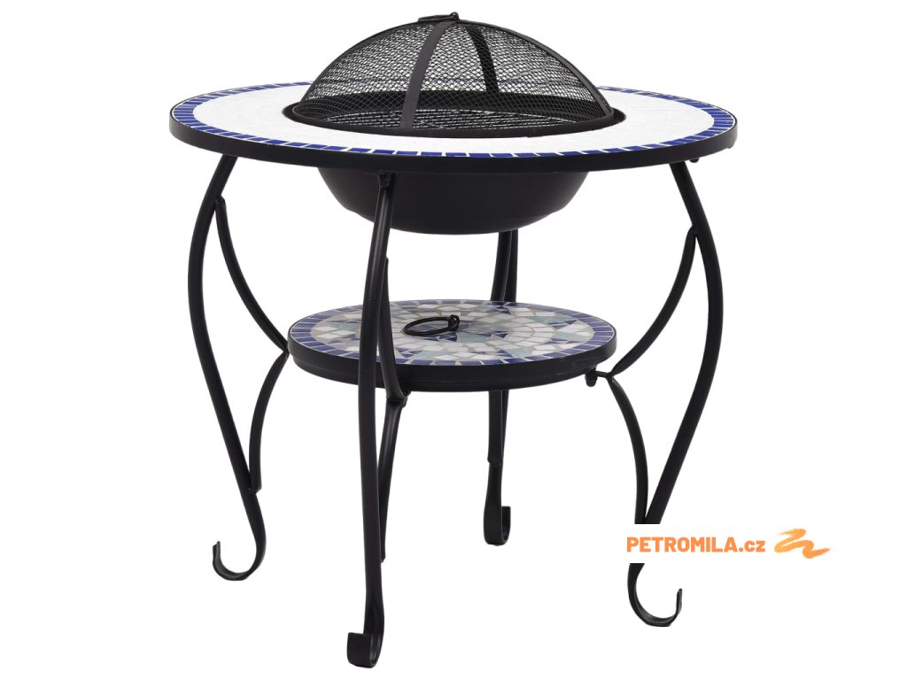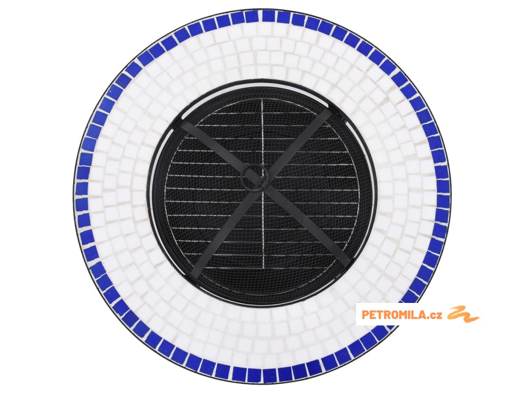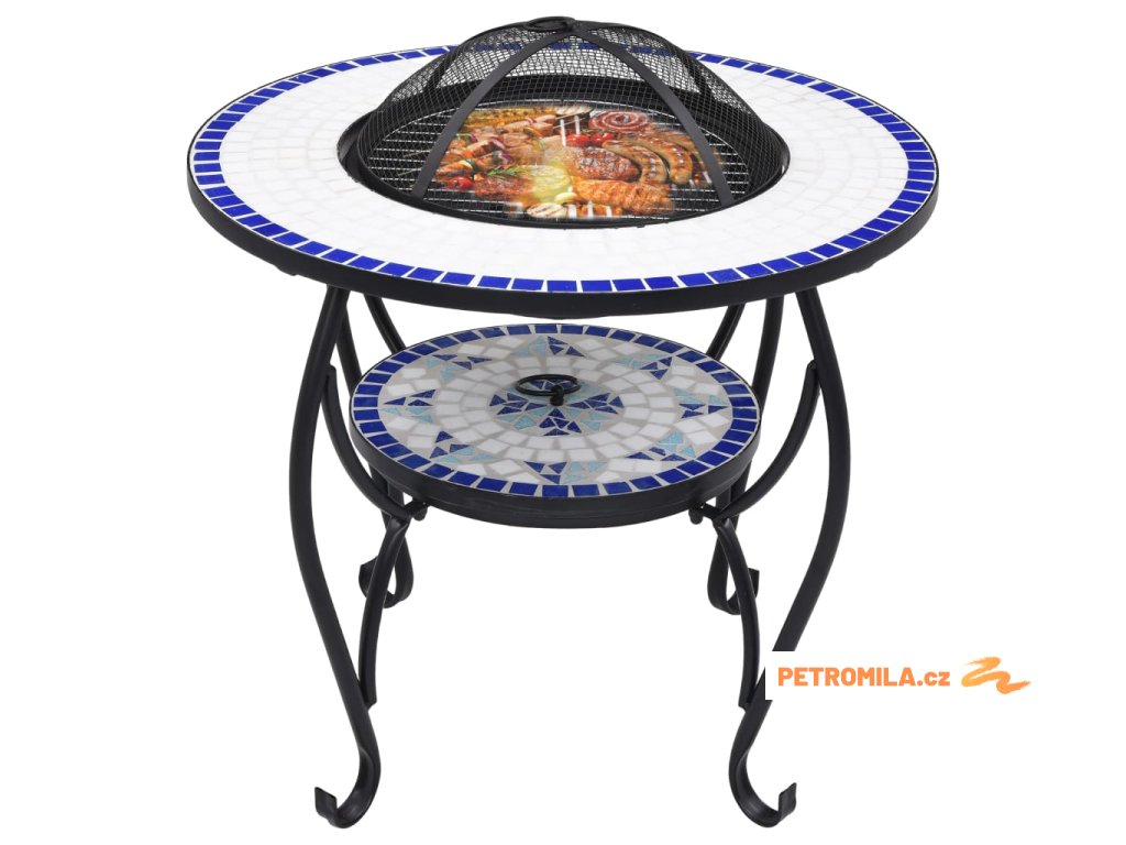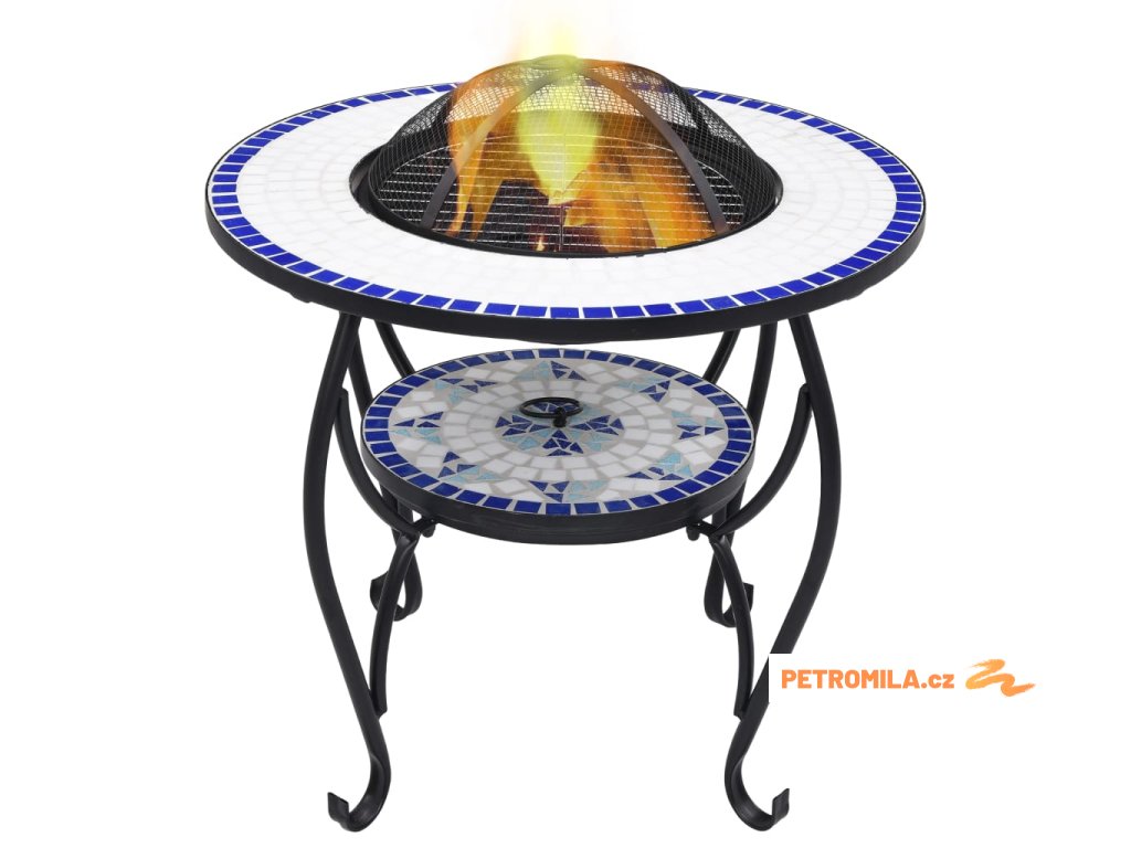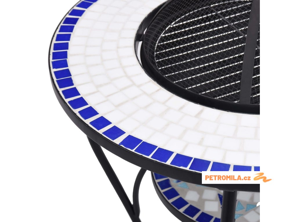 Mozaikový stolek s ohništěm modrý a bílý 68 cm keramika