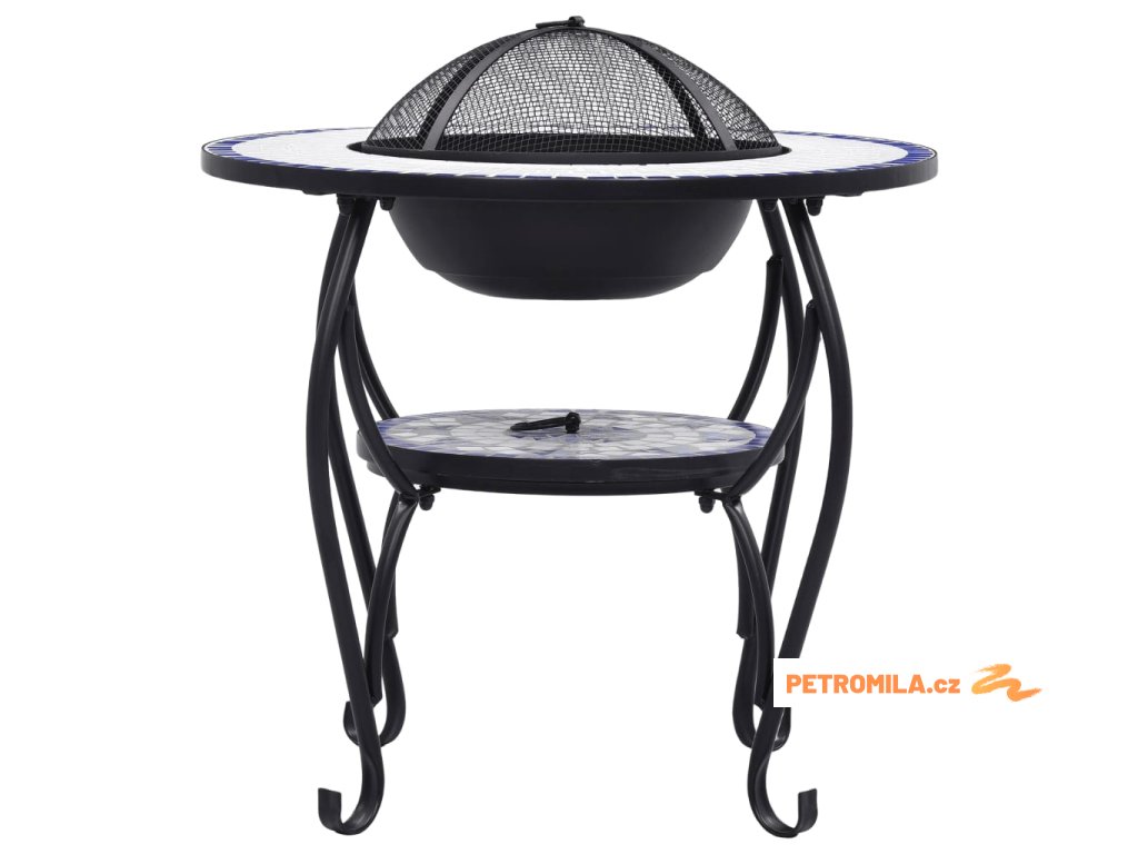 Ohniště je zhotoveno z oceli a výborně pohlcuje a vyzařuje teplo. Můžete v něm spalovat suché dřevo, polínka nebo uhlí. Podpírá ho čtyřnohý stojan. Bezpečnostní síťovaný kryt, který je součástí balení, vám umožní sledovat hořící oheň a zároveň vás ochrání před odletujícími jiskrami a popelem, protože ohniště bezpečně zakrývá. Odstranit ho můžete pohrabáčem, jenž vám rovněž poslouží k přerovnávání hořících polínek či uhlí. Stolek s ohništěm lze navíc také použít jako gril. Jeho kulatý keramický povrch představuje ideální místo k odkládání nápojů a grilovacího příslušenství. Upozorňujeme, že tento výrobek není vhodné ponechávat venku v chladných podmínkách.