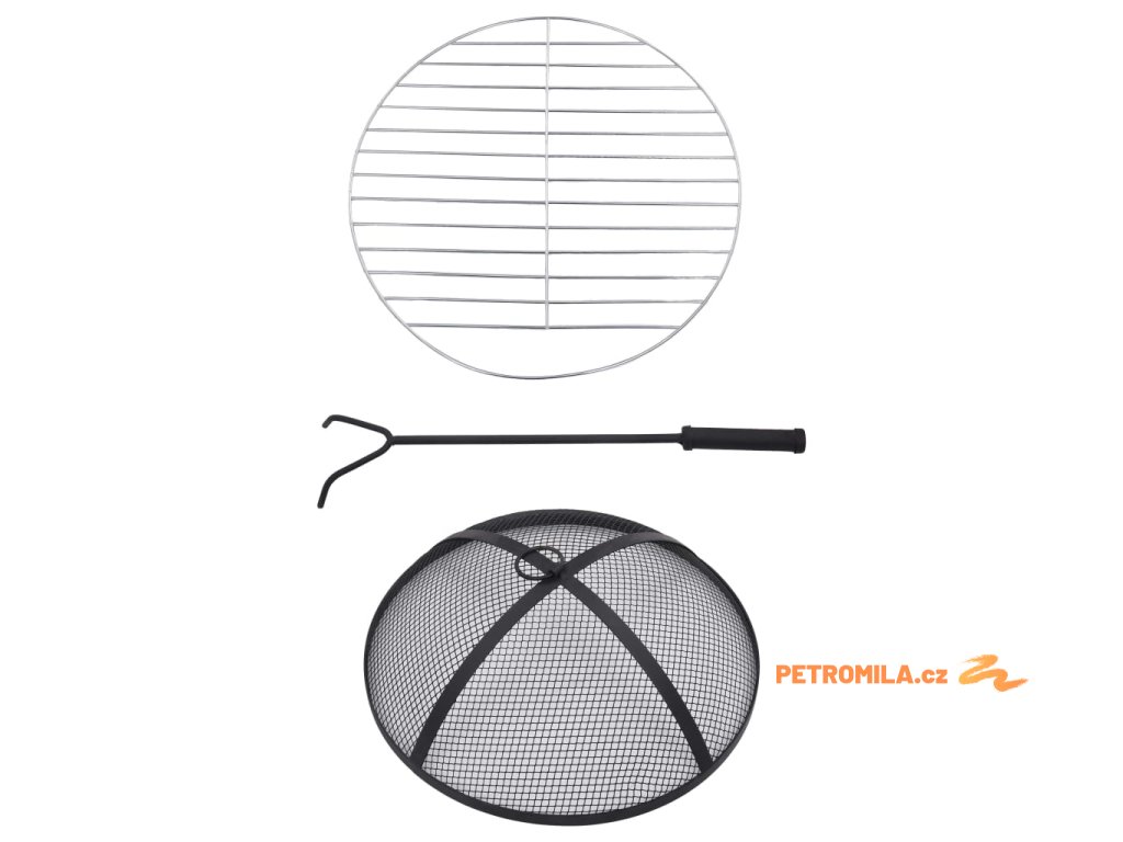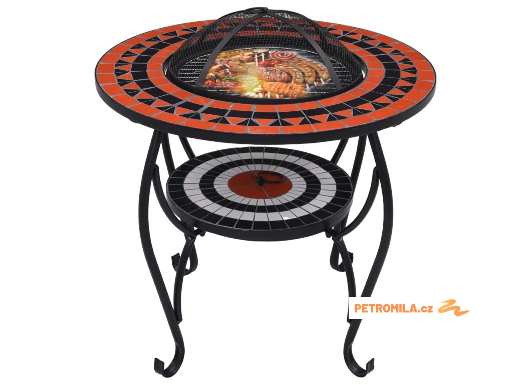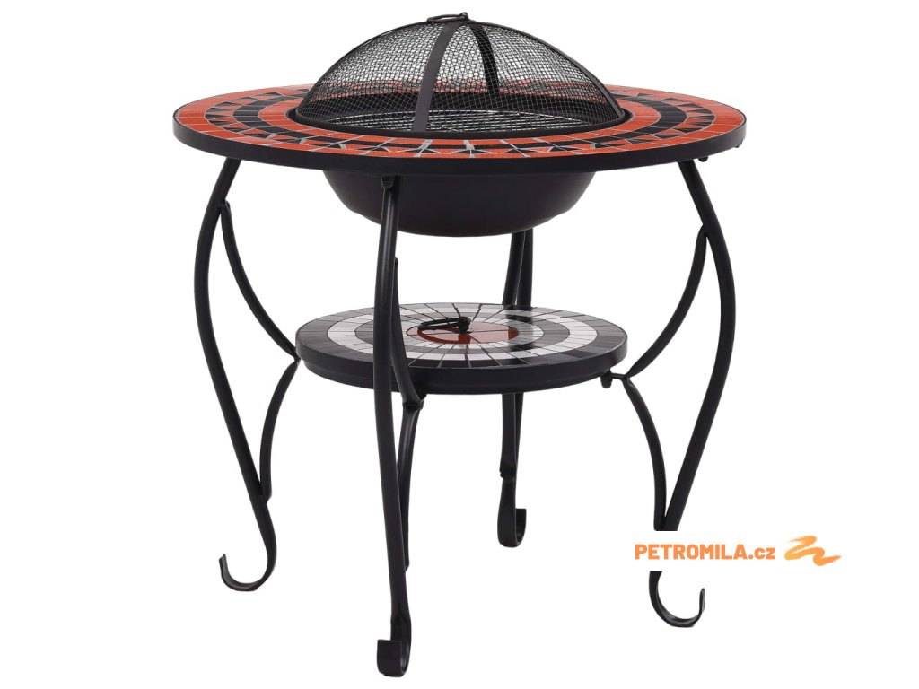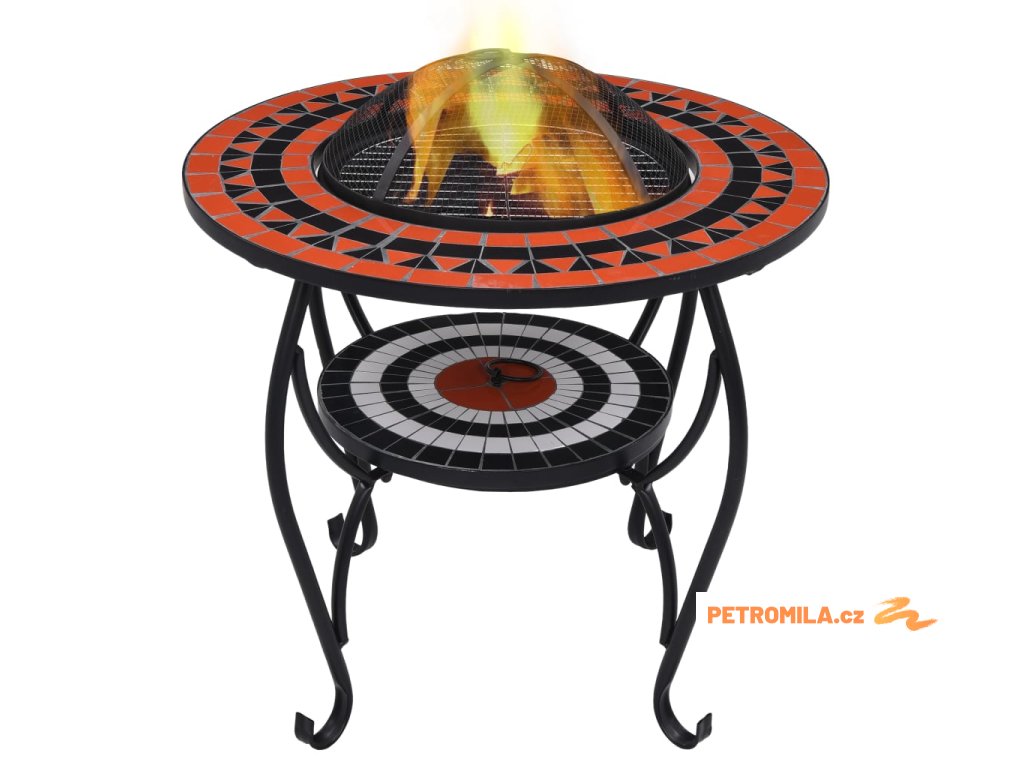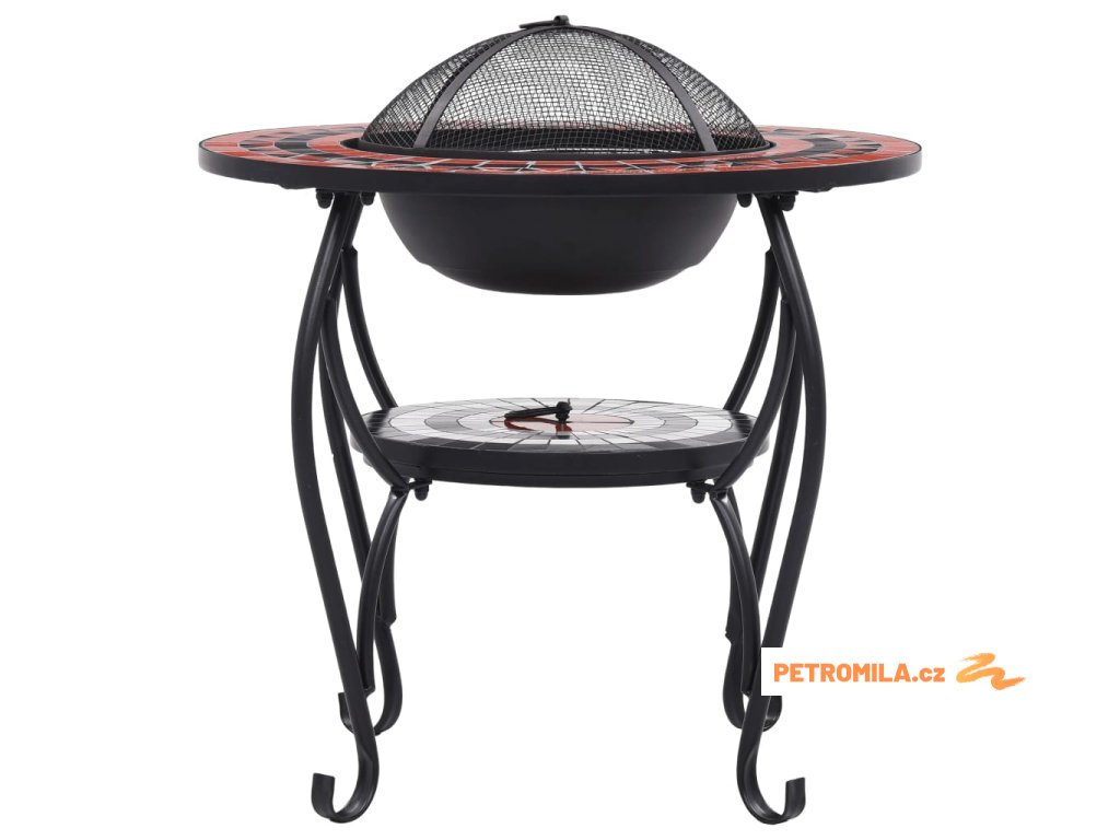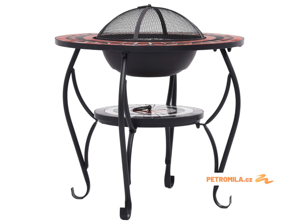 Ohniště je zhotoveno z oceli a výborně pohlcuje a vyzařuje teplo. Můžete v něm spalovat suché dřevo, polínka nebo uhlí. Podpírá ho čtyřnohý stojan. Bezpečnostní síťovaný kryt, který je součástí balení, vám umožní sledovat hořící oheň a zároveň vás ochrání před odletujícími jiskrami a popelem, protože ohniště bezpečně zakrývá. Odstranit ho můžete pohrabáčem, jenž vám rovněž poslouží k přerovnávání hořících polínek či uhlí. Stolek s ohništěm lze navíc také použít jako gril. Jeho kulatý keramický povrch představuje ideální místo k odkládání nápojů a grilovacího příslušenství. Upozorňujeme, že tento výrobek není vhodné ponechávat venku v chladných podmínkách.