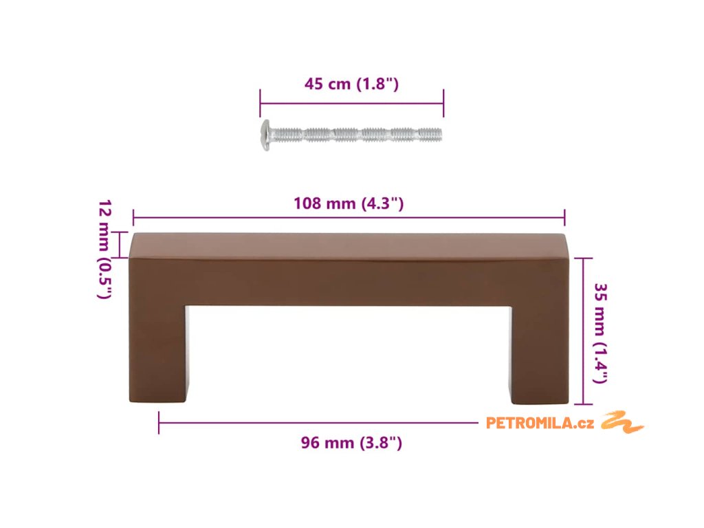 Nábytkové úchytky 10 ks bronzové 96 mm nerezová ocel
