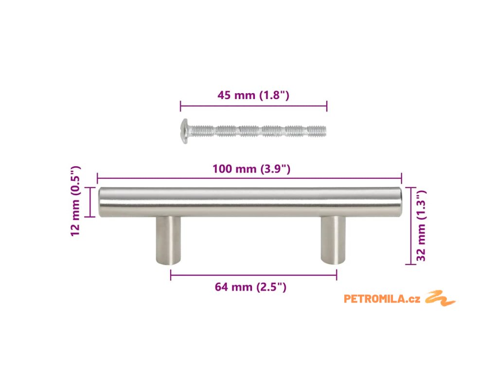 Nábytkové úchytky 10 ks stříbrné 64 mm nerezová ocel
