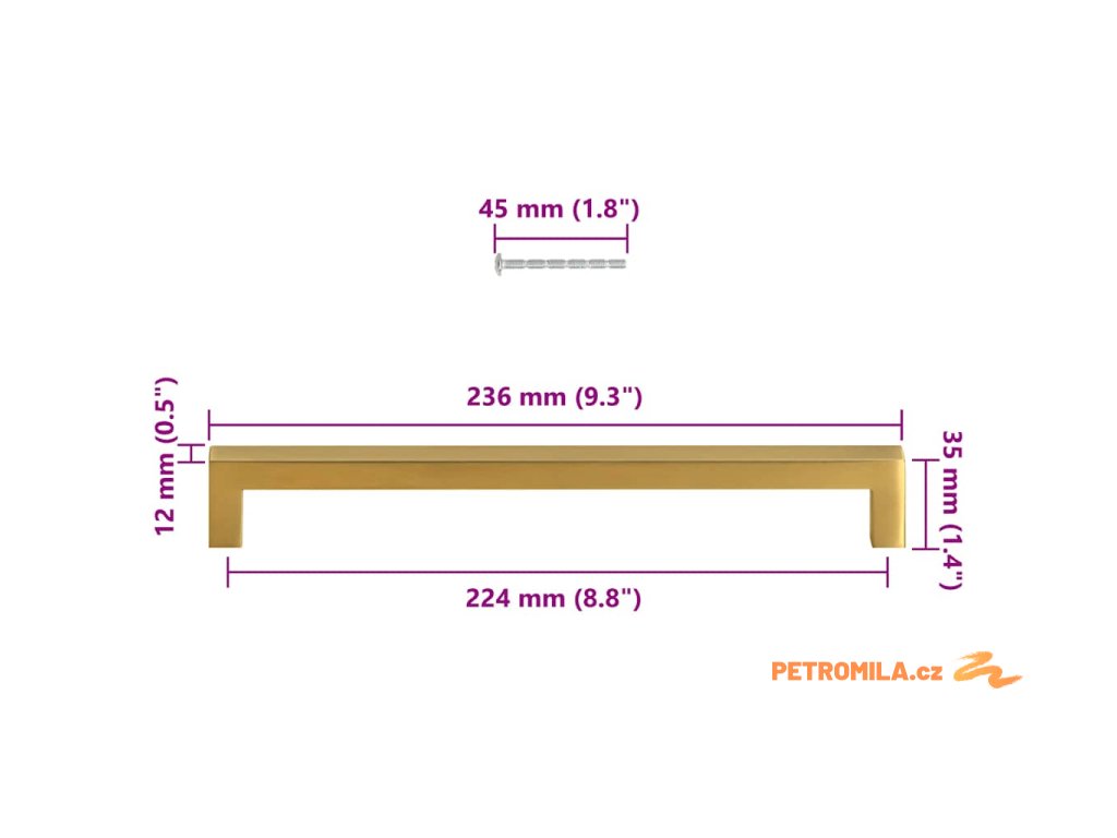 Nábytkové úchytky 10 ks zlaté 224 mm nerezová ocel