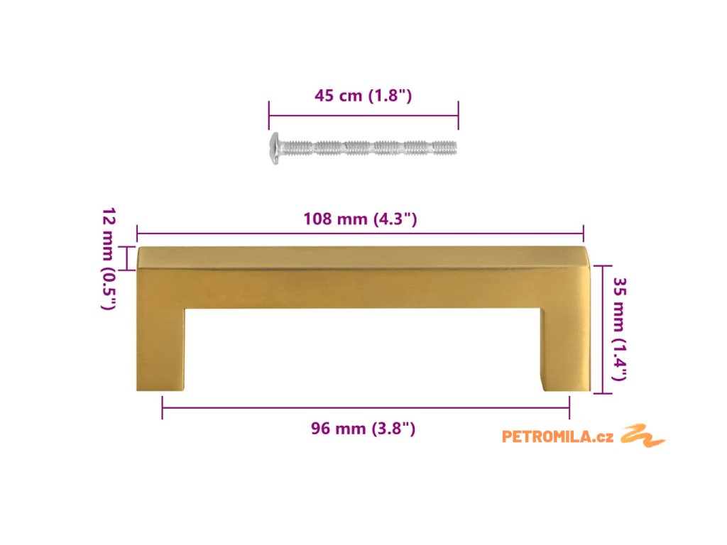 Nábytkové úchytky 10 ks zlaté 96 mm nerezová ocel