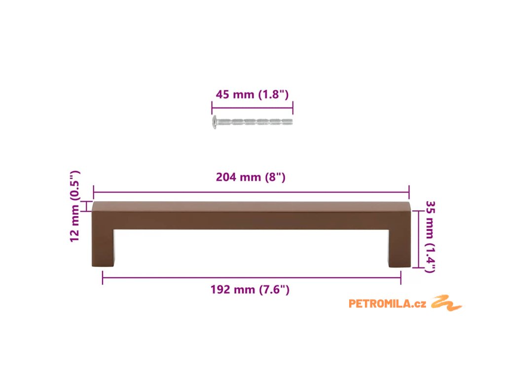 Nábytkové úchytky 5 ks bronzové 192 mm nerezová ocel