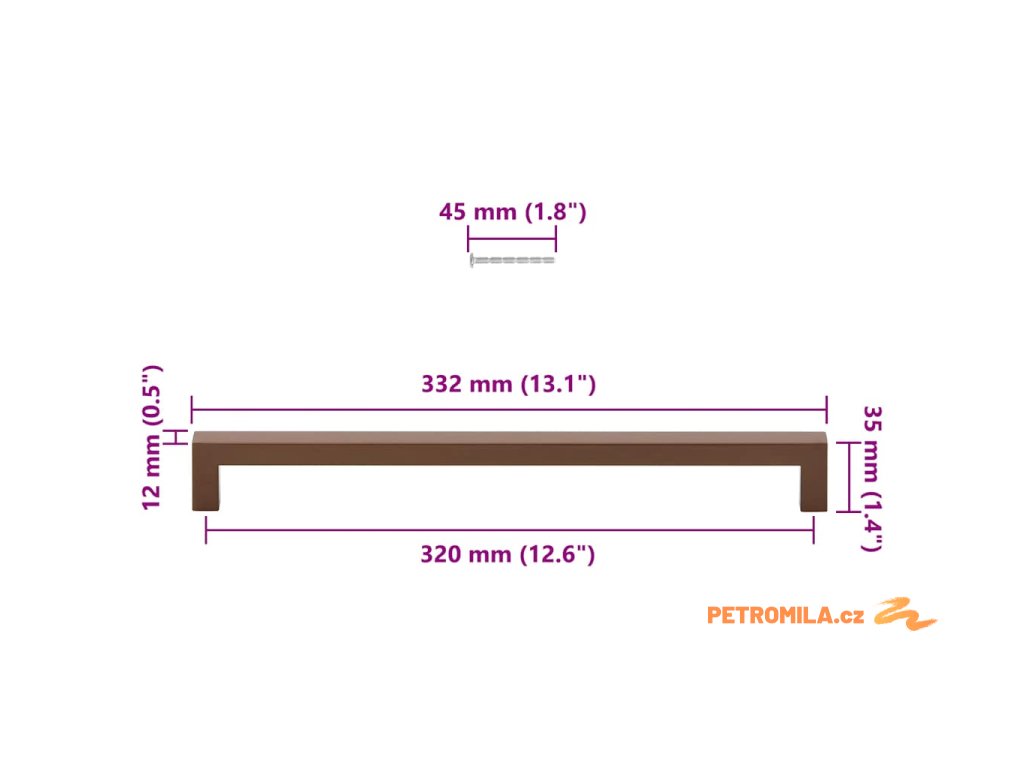 - Rozměry: 332 x 12 x 35 mm (D x Š x V)
