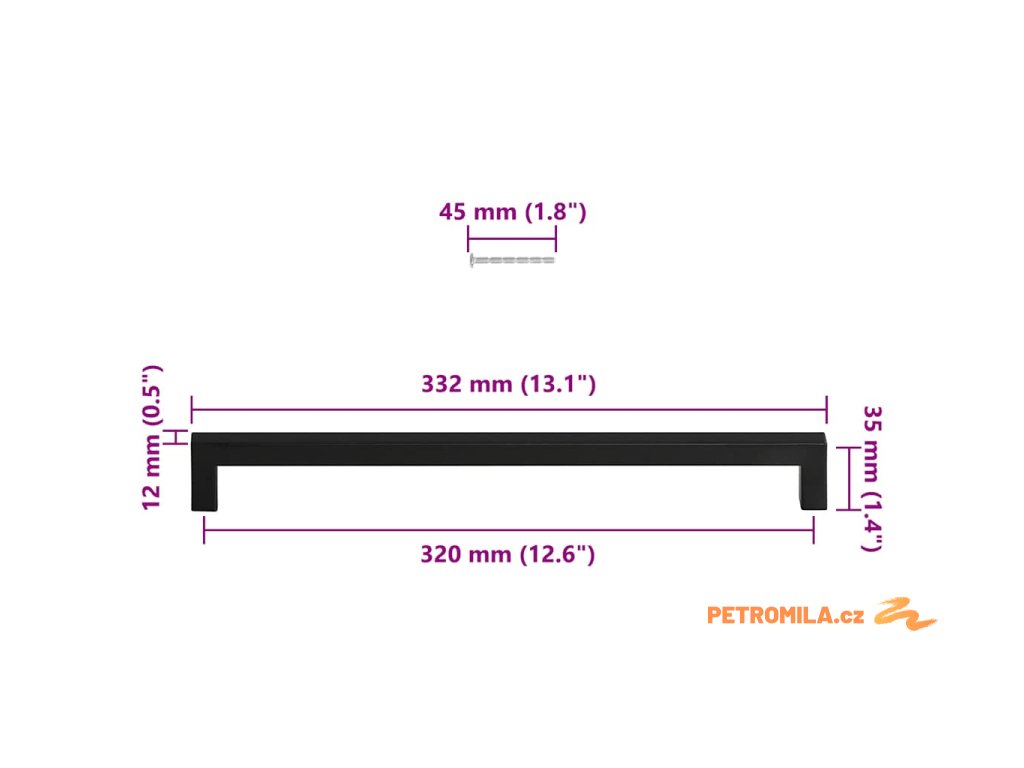 - Rozměry: 332 x 12 x 35 mm (D x Š x V)