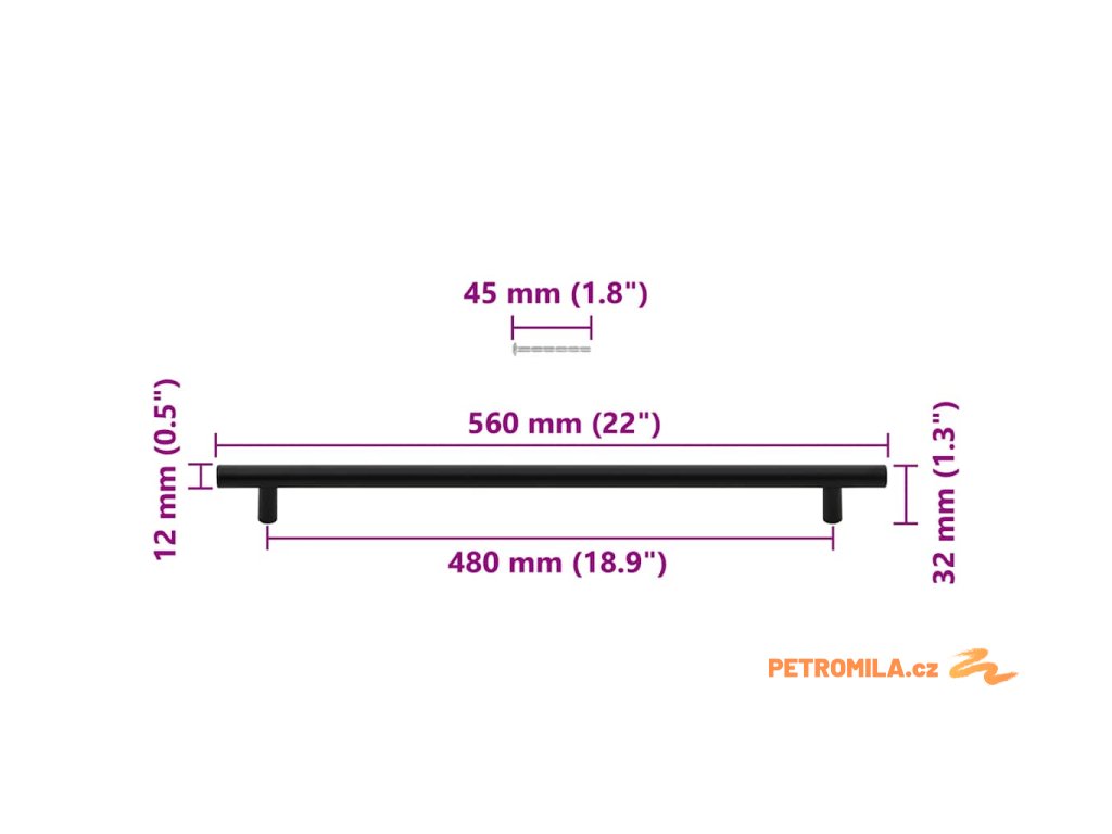 - Rozměry: 560 x 32 mm (D x V)