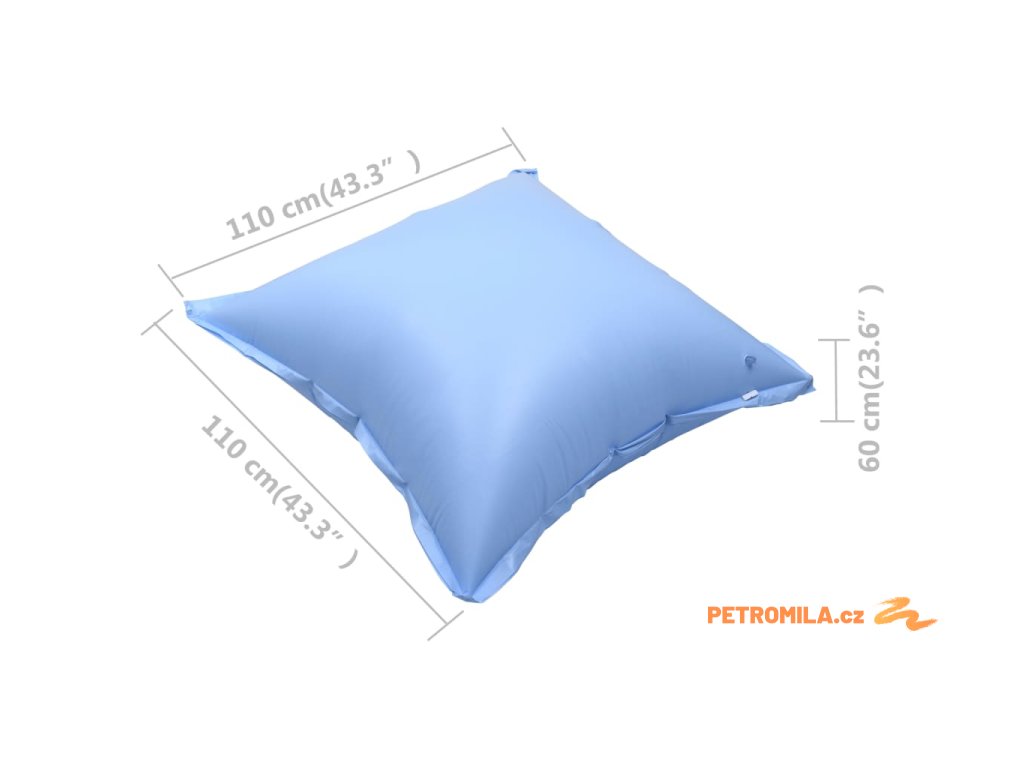 Polštář je vyrobený z odolného PVC, dlouho vám proto vydrží, a to i při venkovním použití. Po nafouknutí měří každý z nich 110 x 110 cm. Slouží k nadzdvihnutí plachty nad hladinu vody, aby vám k ní nepřimrzala voda v bazénu.