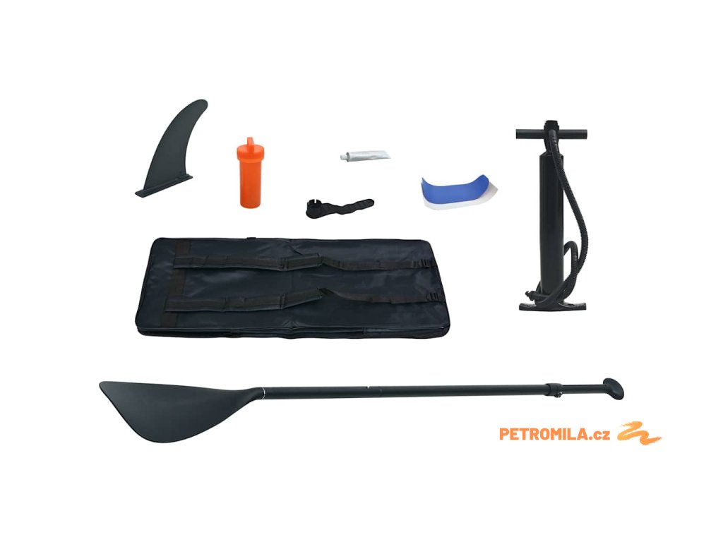 Je vybavený speciálními vysokotlakými šroubovými ventily pro rychlé nahuštění a vyfouknutí. Dvě pevné finy a jedna odnímatelná jsou dostatečně odolné, aby zvládly tlak při pádlování. Přiložená je i praktická taška pro snadnou a rychlou přepravu. Náš SUP board má perfektní povrchové zakřivení, které podporuje jeho konstrukční tuhost pro stabilnější jízdu. Prkno bez námahy klouže po klidné hladině a hladce projíždí příbojem. Nafukovací SUP board je odolný proti propíchnutí i UV záření a skvěle odolává extrémním námořním podmínkách. Upozorňujeme, že jde o výrobek určený dospělým osobám.