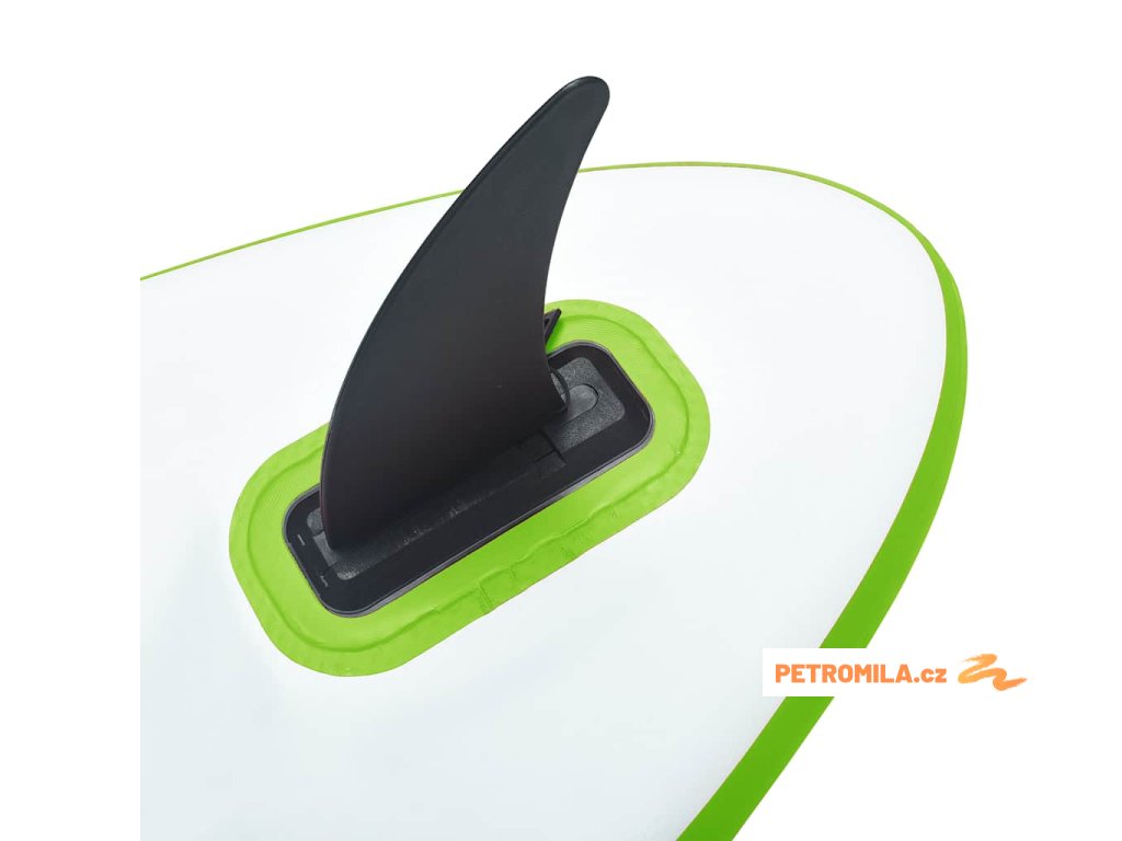 Je vybavený speciálními vysokotlakými šroubovými ventily pro rychlé nahuštění a vyfouknutí. Dvě pevné finy a jedna odnímatelná jsou dostatečně odolné, aby zvládly tlak při pádlování. Přiložená je i praktická taška pro snadnou a rychlou přepravu. Náš SUP board má perfektní povrchové zakřivení, které podporuje jeho konstrukční tuhost pro stabilnější jízdu. Prkno bez námahy klouže po klidné hladině a hladce projíždí příbojem. Nafukovací SUP board je odolný proti propíchnutí i UV záření a skvěle odolává extrémním námořním podmínkách. Upozorňujeme, že jde o výrobek určený dospělým osobám.