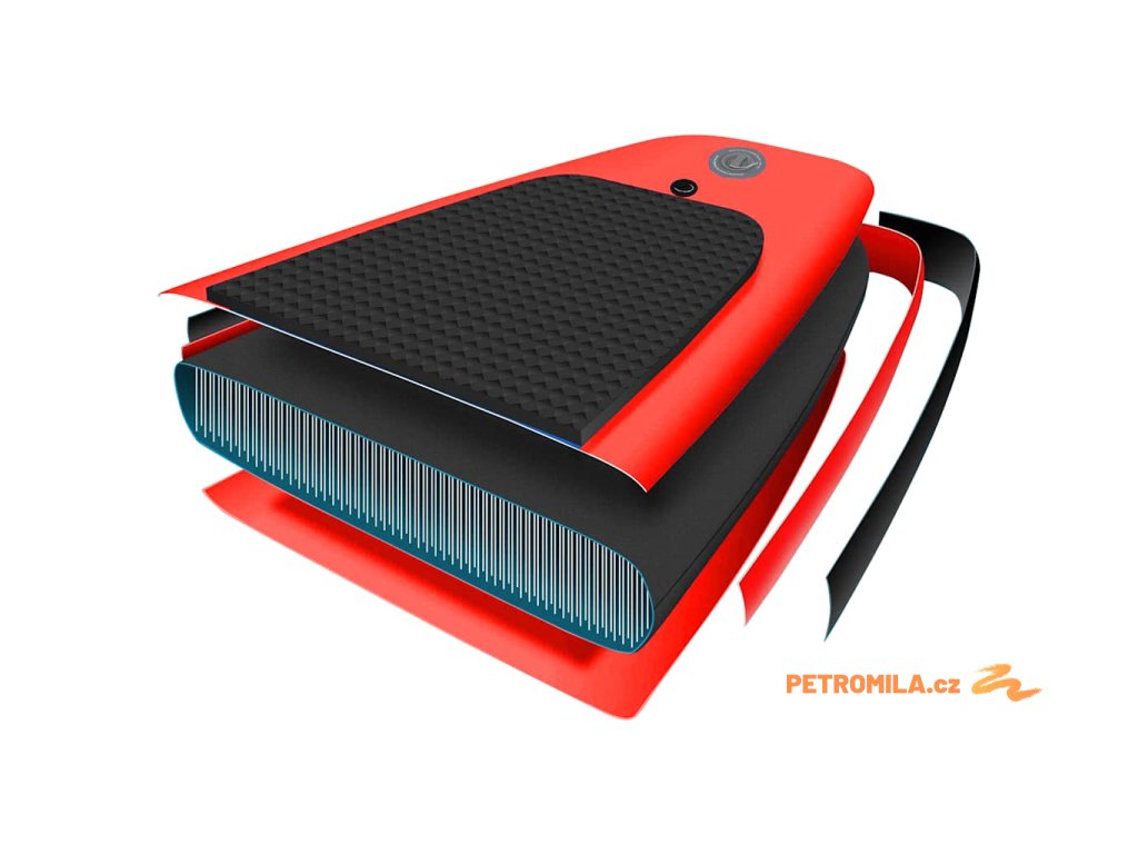 - Nafukovací design: Nafukovací SUP board je odolný proti propíchnutí a UV záření. Je vybavený speciálními vysokotlakými šroubovými ventily pro rychlé nahuštění a vyfouknutí.