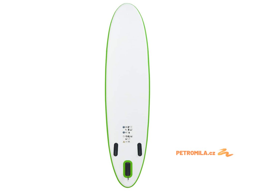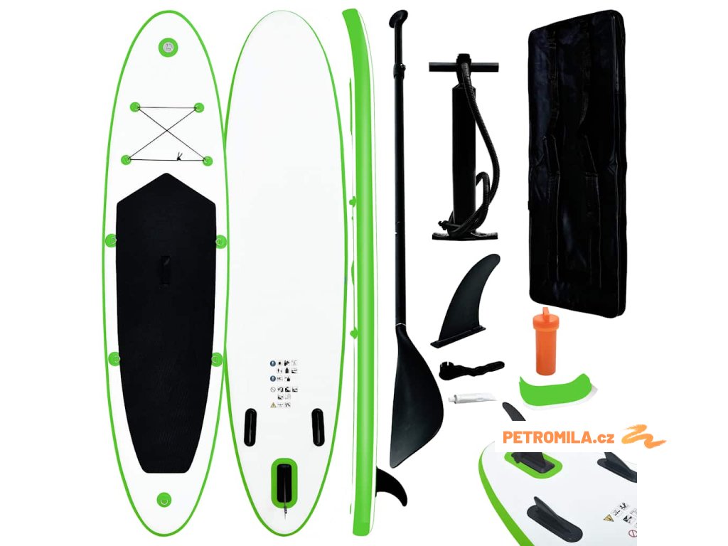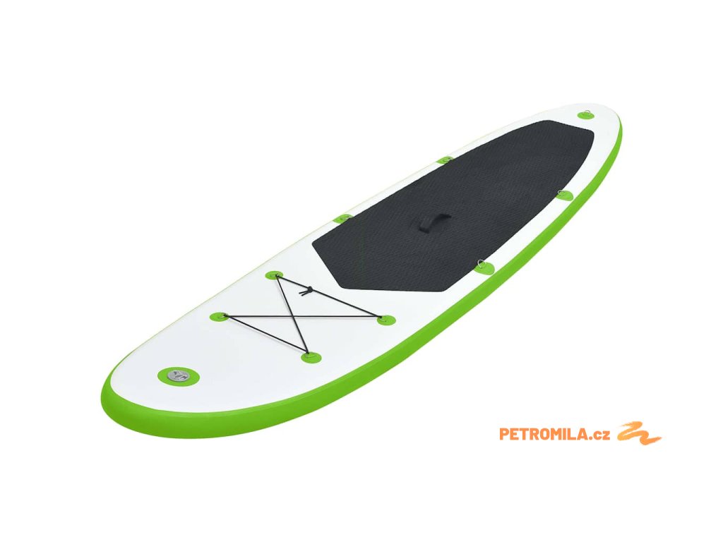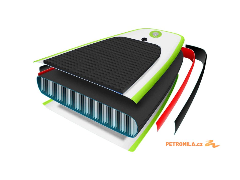 Je vybavený speciálními vysokotlakými šroubovými ventily pro rychlé nahuštění a vyfouknutí. Dvě pevné finy a jedna odnímatelná jsou dostatečně odolné, aby zvládly tlak při pádlování. Přiložená je i praktická taška pro snadnou a rychlou přepravu. Náš SUP board má perfektní povrchové zakřivení, které podporuje jeho konstrukční tuhost pro stabilnější jízdu. Prkno bez námahy klouže po klidné hladině a hladce projíždí příbojem. Nafukovací SUP board je odolný proti propíchnutí i UV záření a skvěle odolává extrémním námořním podmínkách. Upozorňujeme, že jde o výrobek určený dospělým osobám.