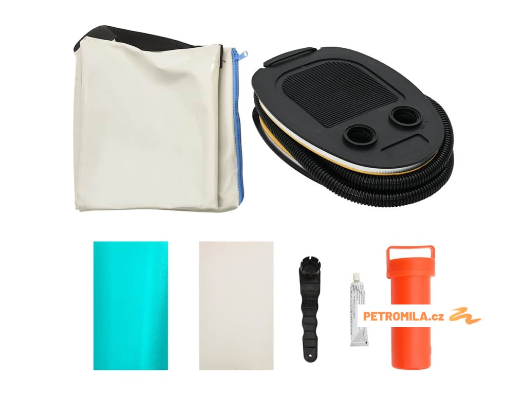 Balení rovněž obsahuje pumpu pro snadné nafouknutí a vyfouknutí. Všechny položky jsou zabalené v obalu z PVC pro jednodušší přepravu a skladování.