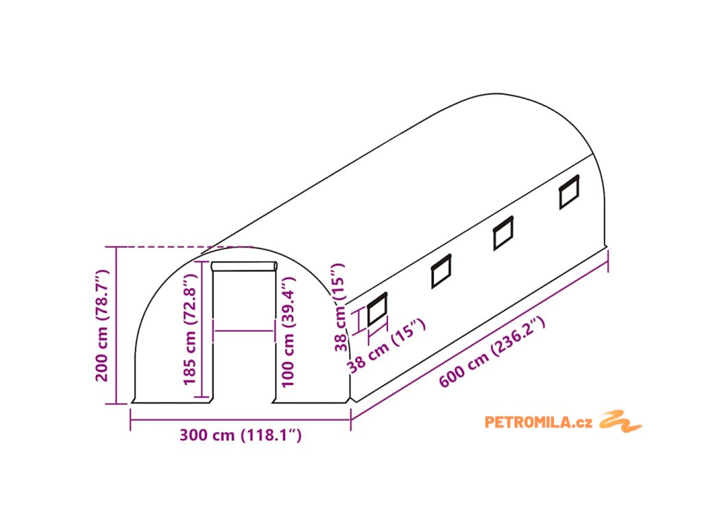 Plachta je vyrobená z PE, který je těžší než standardní síťovina. Tato skleníková plachta disponuje 8 okny pro větrání a také dveřmi.