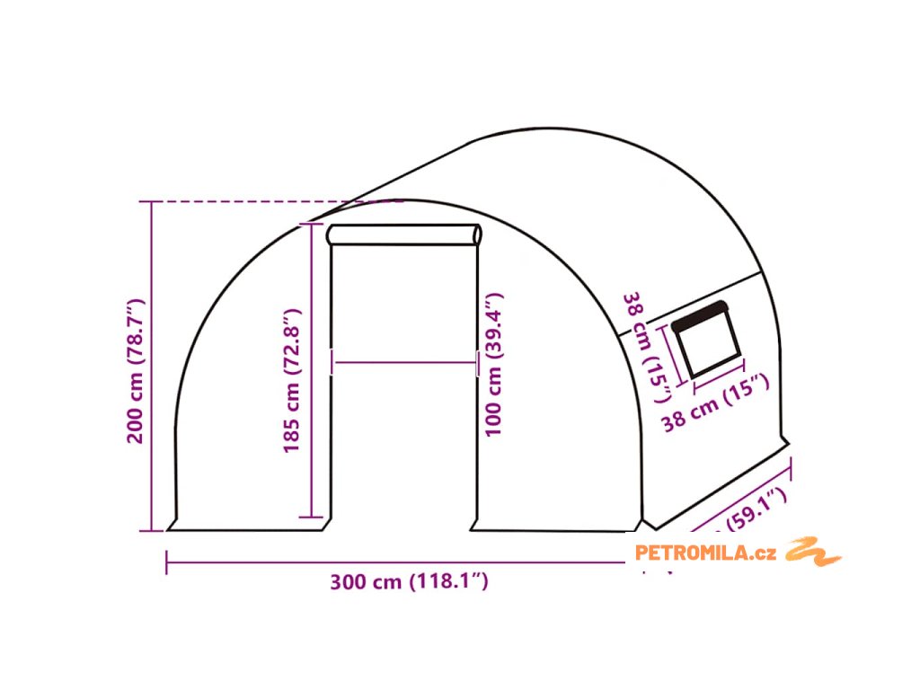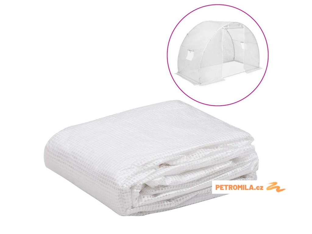 Plachta je vyrobená z PE, který je těžší než standardní síťovina. Tato skleníková plachta disponuje dvěma okny pro větrání a také dveřmi.