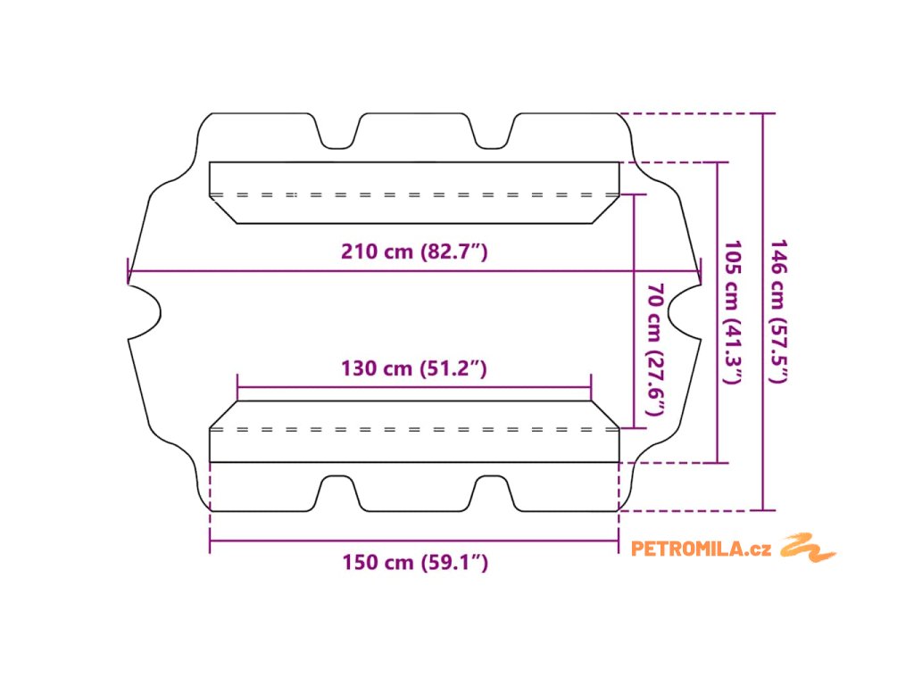 - Rozměry stříšky: 150 x 82,5/105 x 18 cm (D x Š x V)