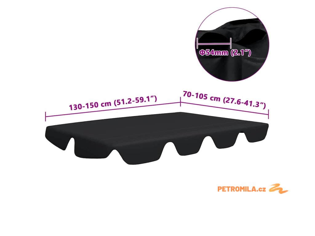 Náhradní stříška na zahradní houpačku černá 150/130 x 105/70 cm