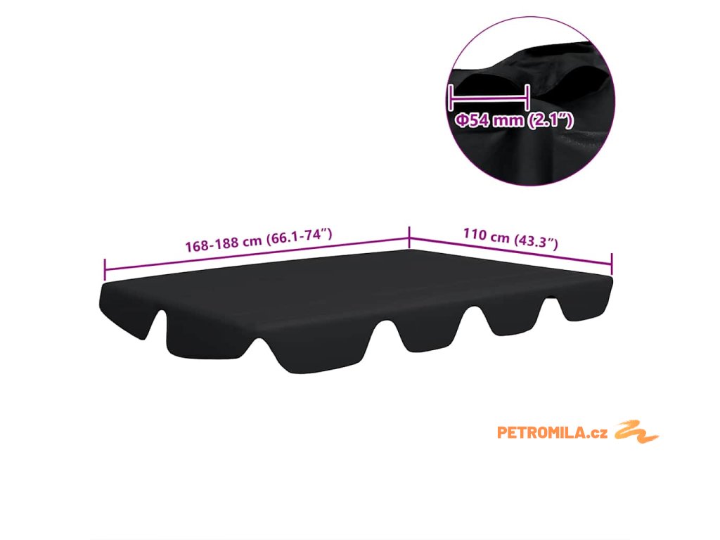 Náhradní stříška na zahradní houpačku černá 188/168x145/110 cm