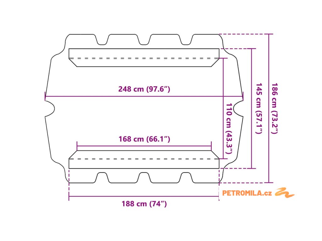 - Rozměry stříšky: 188 x 122,5/145 x 18 cm (D x Š x V)