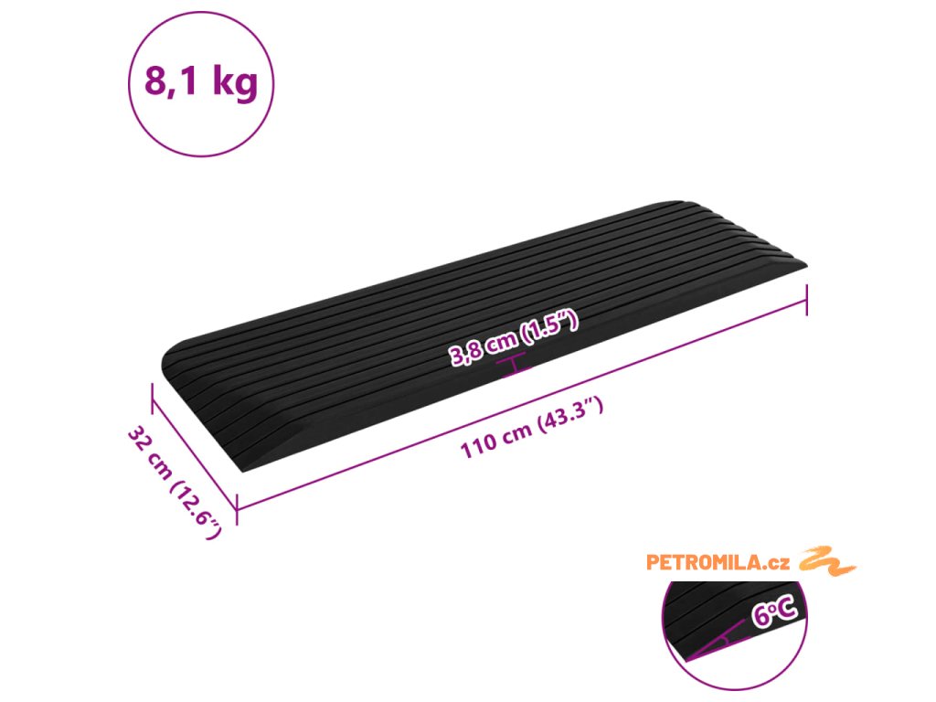 Silniční rampa je vyrobená z robustní pryže, takže je lehká, odolná a má dlouhou životnost. Drsný povrch s protiskluzovou strukturou brání sjetí nebo sklouznutí koleček při najíždění nahoru.