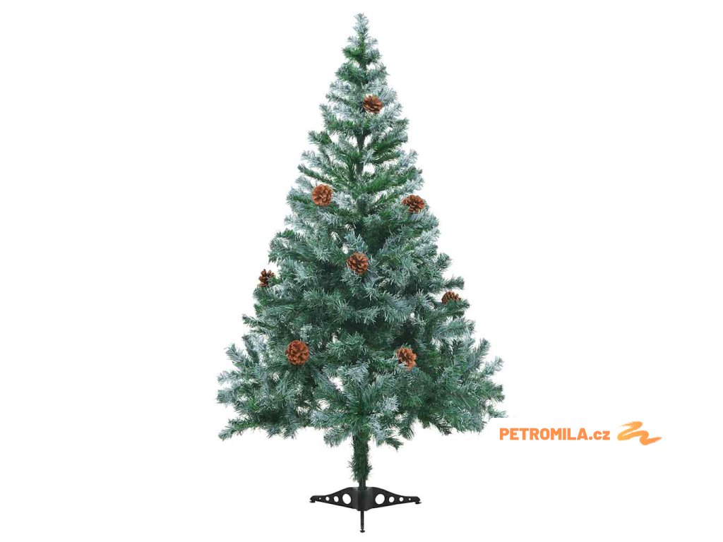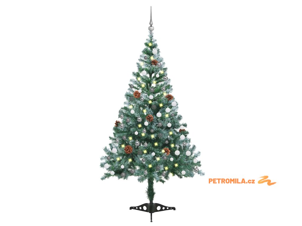 Námrazou pokrytý vánoční stromek LED sada koulí a šišky 150 cm
