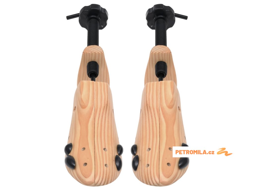 Napínáky obuvi jsou vyrobené z masivního borového dřeva, které dokáže pohltit vlhkost a eliminovat nepříjemné pachy. Otáčením kliky a háku ve tvaru L si přizpůsobíte jejich délku a šířku. Otvory v napínácích a přiložené dílky proti puchýřům pomáhají ulevovat od bolesti v tlakových bodech.