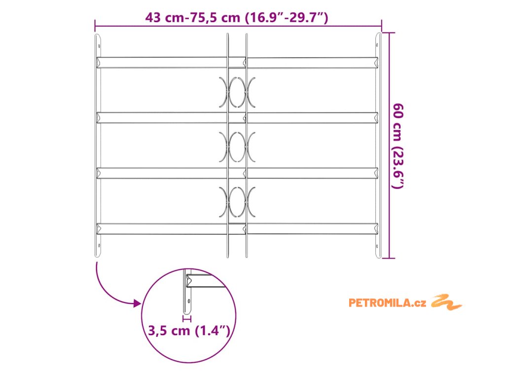 Nastavitelná bezpečnostní okenní mříž se 4 příčkami 500–650 mm