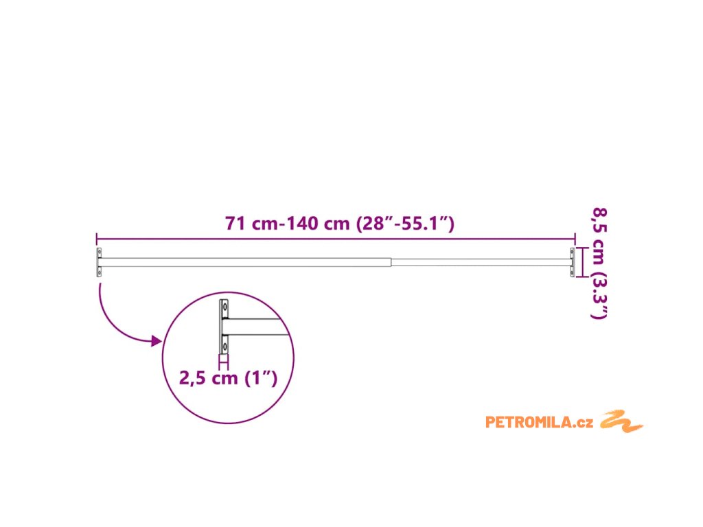 Její délku je možné nastavit v rozmezí od 710 až 1 200 mm tak, aby seděla na místě. Instalace je velmi snadná, jednoduše ji našroubujte do požadované polohy.