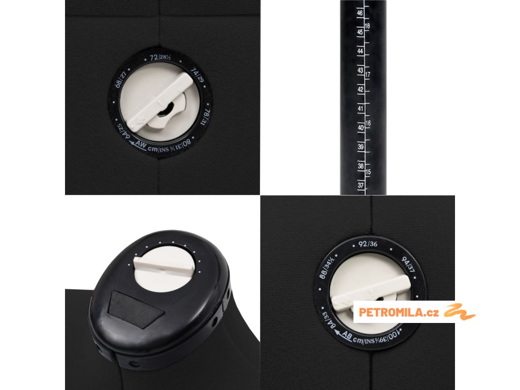 Tato výstavní figurína se skvěle hodí pro každý styl dámského oblečení. Výšku můžete upravit tak, aby vyhovovala vašim potřebám. Krejčovská figurína rovněž umožňuje nastavit rozměry hrudníku, pasu a boků otáčením koleček vpředu a po straně. Čtyřnohý stojan zajišťuje mimořádnou stabilitu.