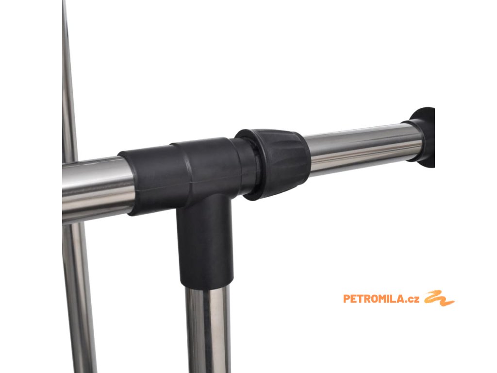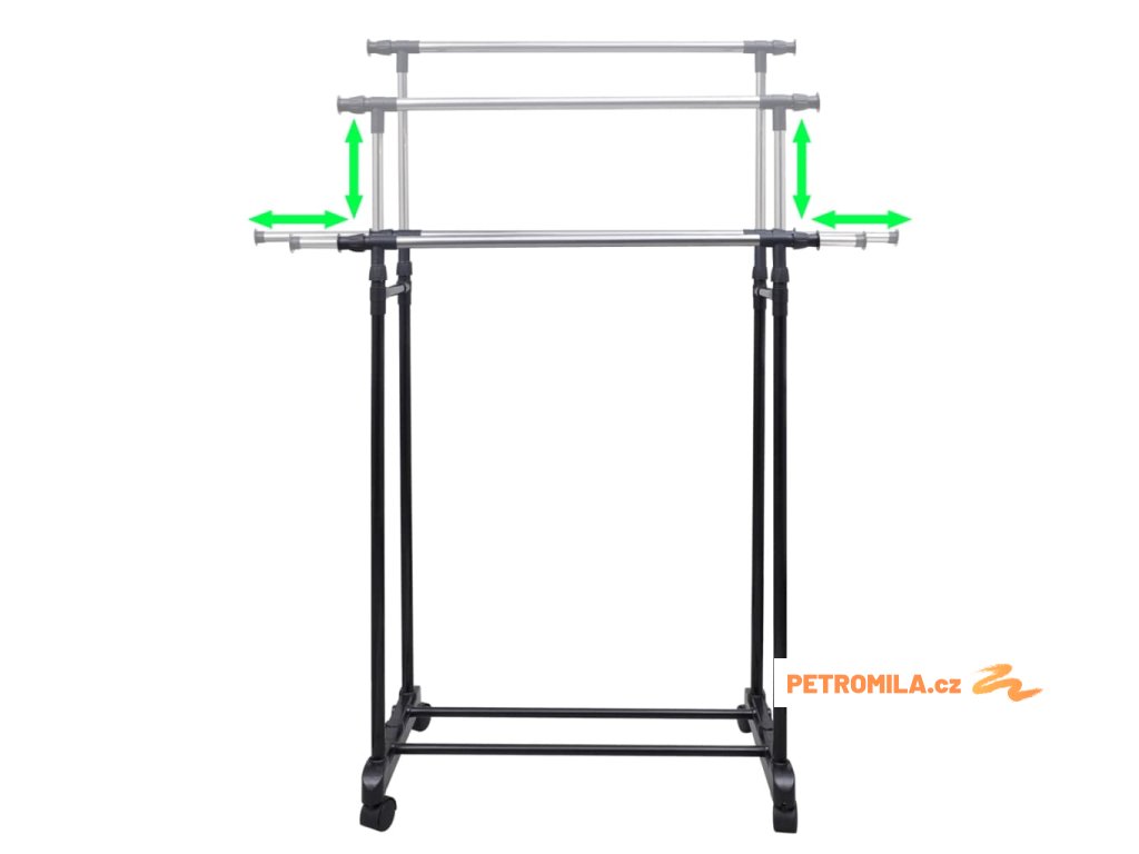 Dvě šatní tyče lze roztáhnout až na 150 cm, nabízí tudíž maximum prostoru k rozvěšení oblečení. Samotný stojan ale přitom zabírá jen minimálně místa. Nastavit lze též jeho výšku, a to od 108 cm do 170 cm.