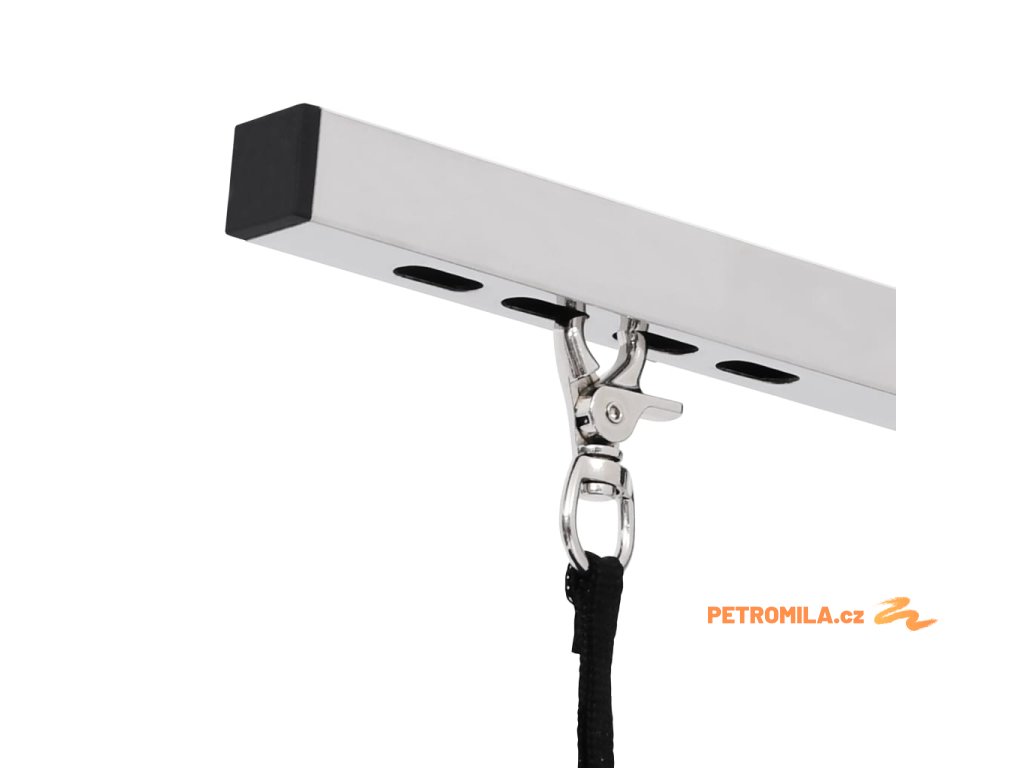 Stůl pro stříhání domácích mazlíčků podepírají ocelové nohy, takže je stabilní a robustní. Vaši miláčci mohou pohodlně stát na velké protiskluzové stolní desce. Zastřihovací rameno z nerezové oceli je výškově nastavitelné, dá se tedy přizpůsobit vám a velikosti vašeho domácího mazlíčka. Stůl je skládací, což je ideální pro mobilní psí kadeřníky i pro domácí použití, protože se snadno převáží a skladuje. Pod stolní deskou se nachází koš, kam můžete ukládat každodenní potřeby vašeho zvířete. Zaoblené rohy stolu navíc chrání před zraněním.