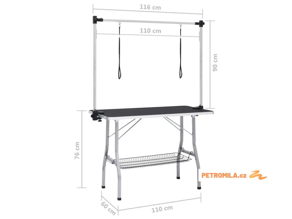 Nastavitelný stůl na stříhání psů se 2 smyčkami a košem