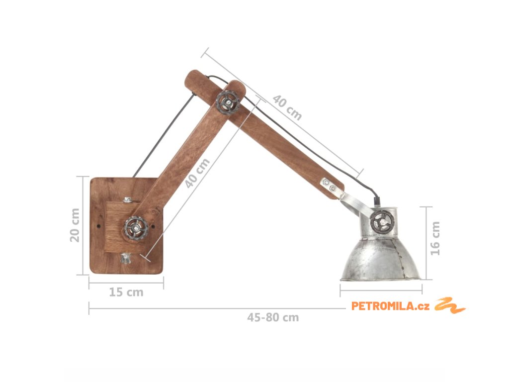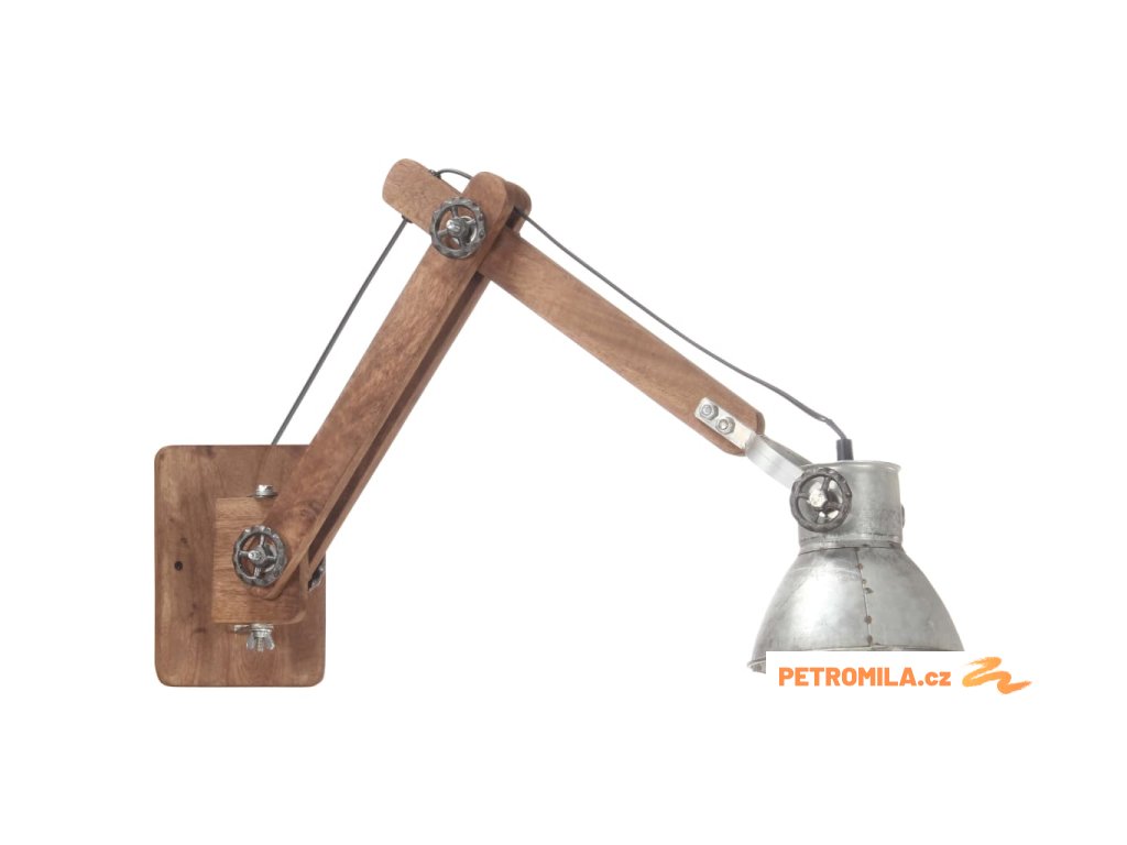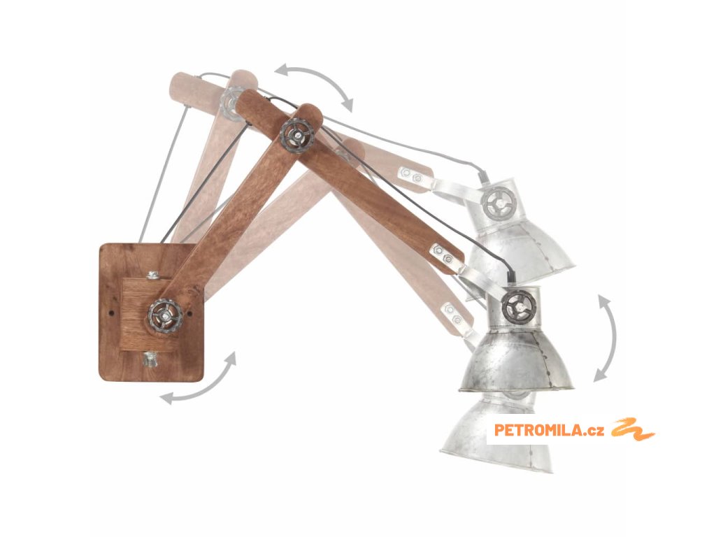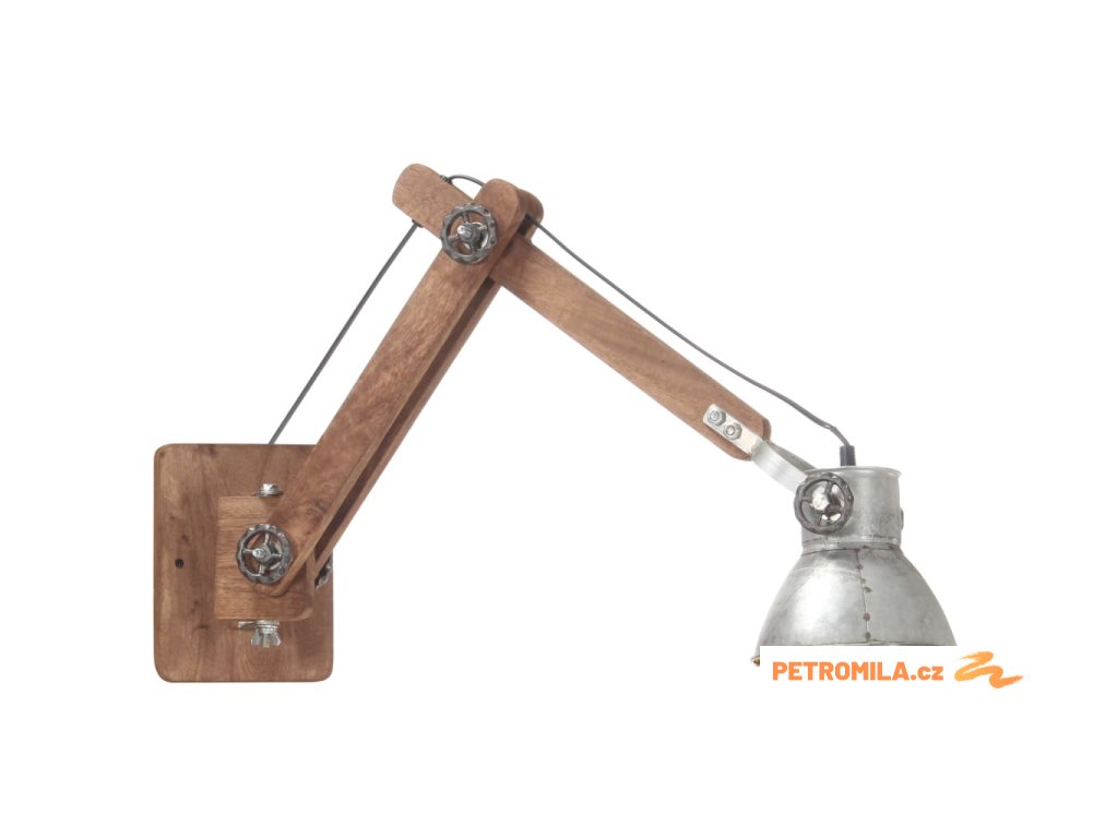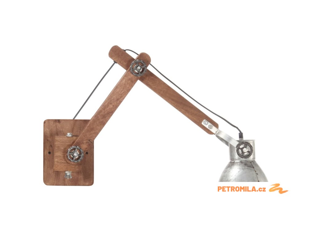 Nástěnné světlo je kombinované s polohovacím ramenem z masivního mangovníkového dřeva a železným stínidlem a je velmi odolné. Nastavitelné a flexibilní rameno vám umožní upevnit světlo v jakékoli požadované výšce. Starovenkovský vzhled s povrchovou úpravou ve stylu zvětralého dřeva a lota vintage povrchová úprava na stínidlu dodávají lampě industriální šarm. Tato lampa na čtení je napájená nízkým napětím a může být energeticky úsporná.