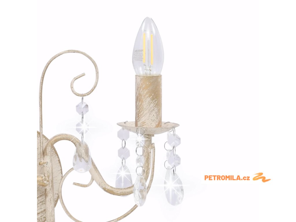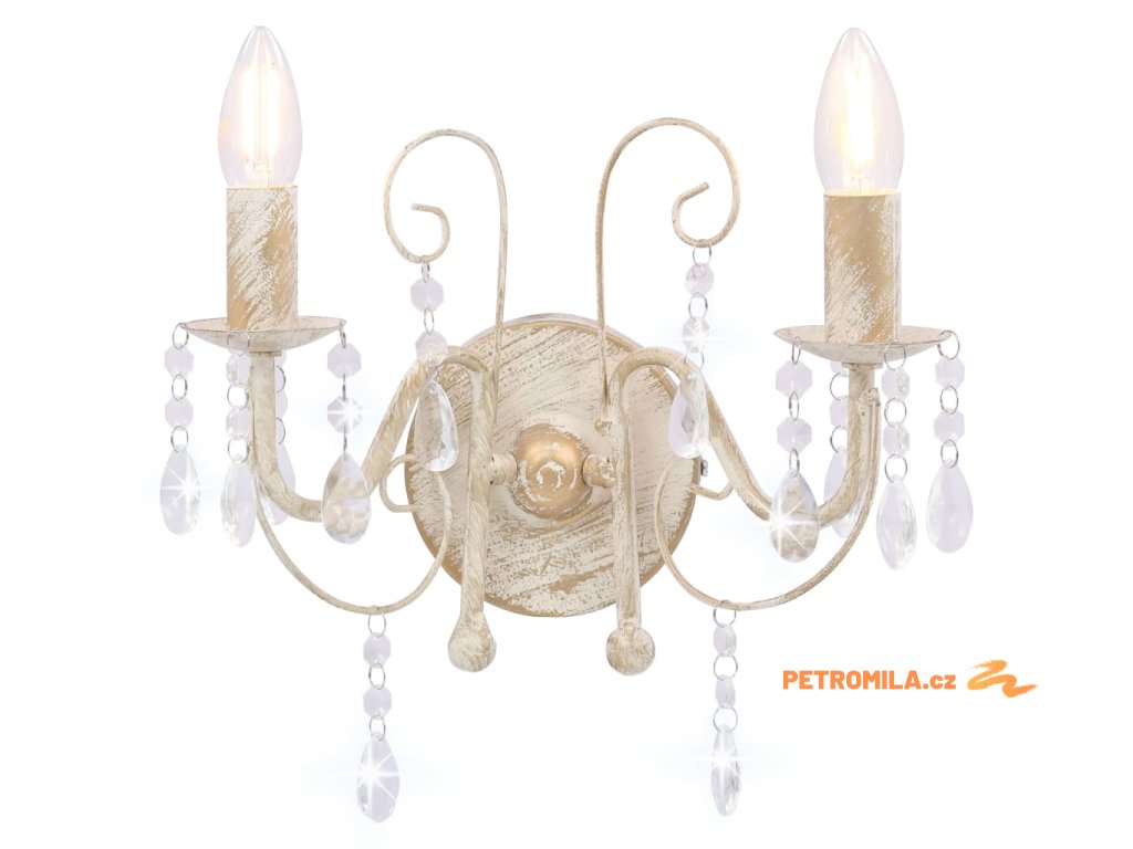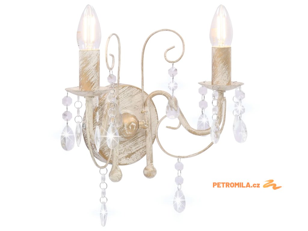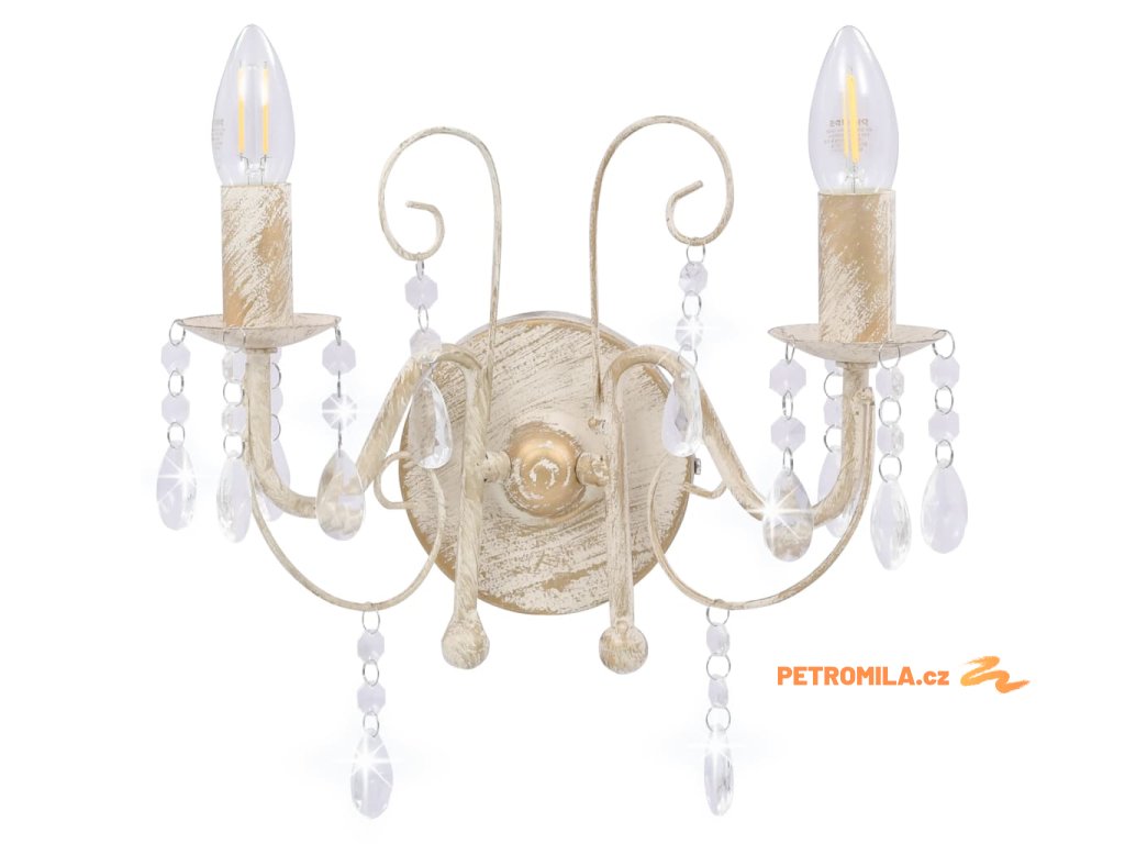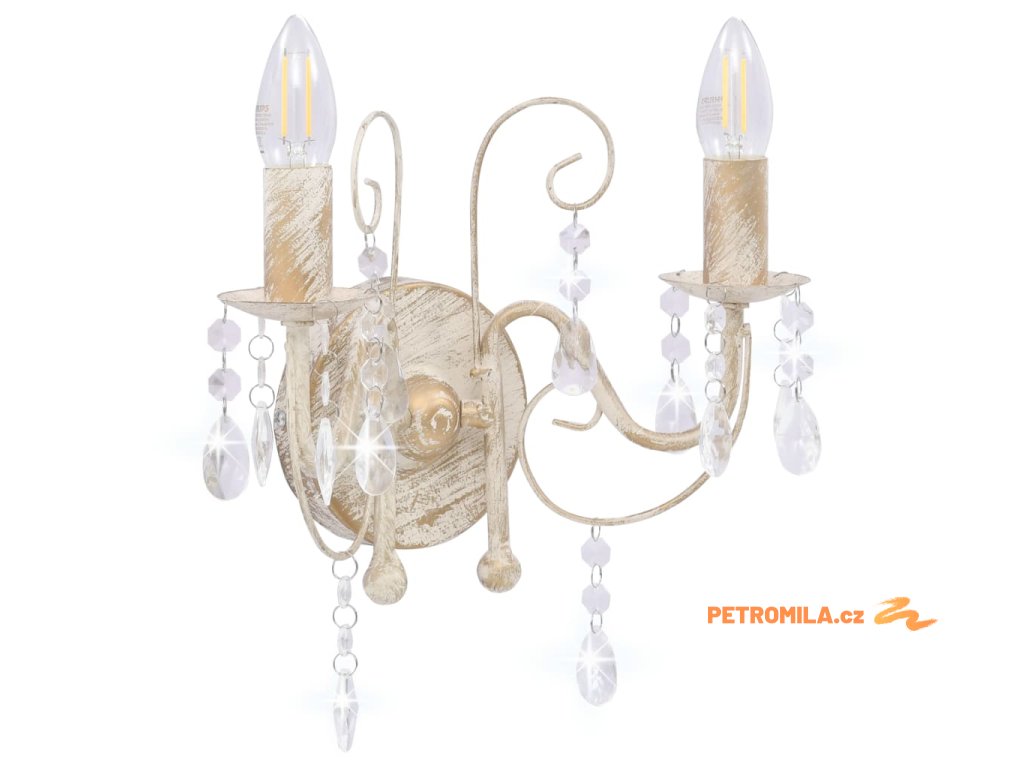 Nástěnná lampa s korálky bílá patina 2 x žárovka E14