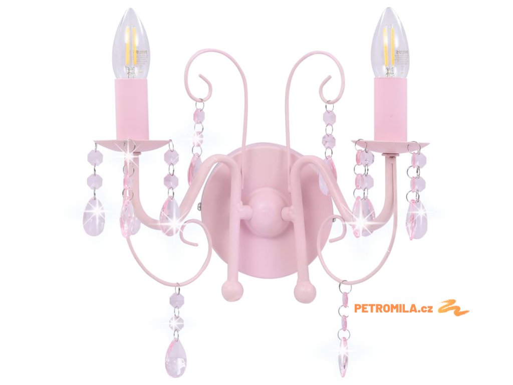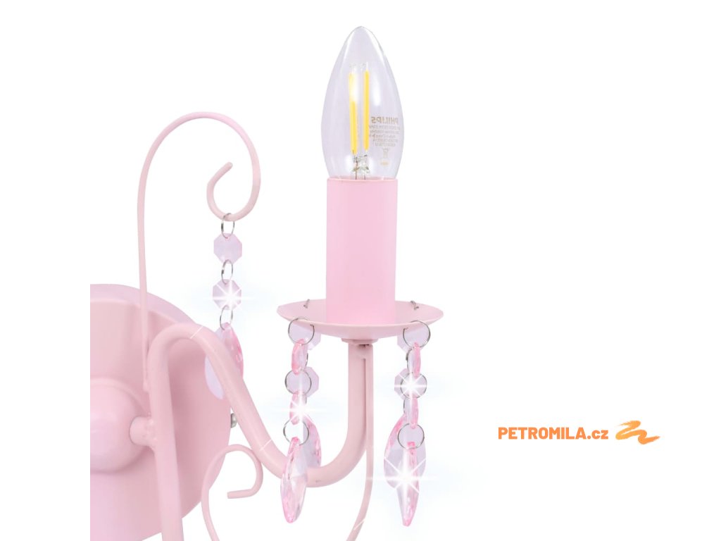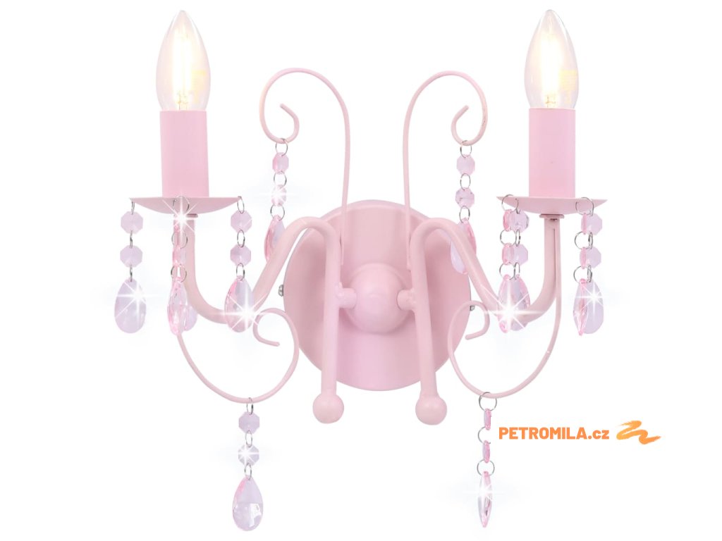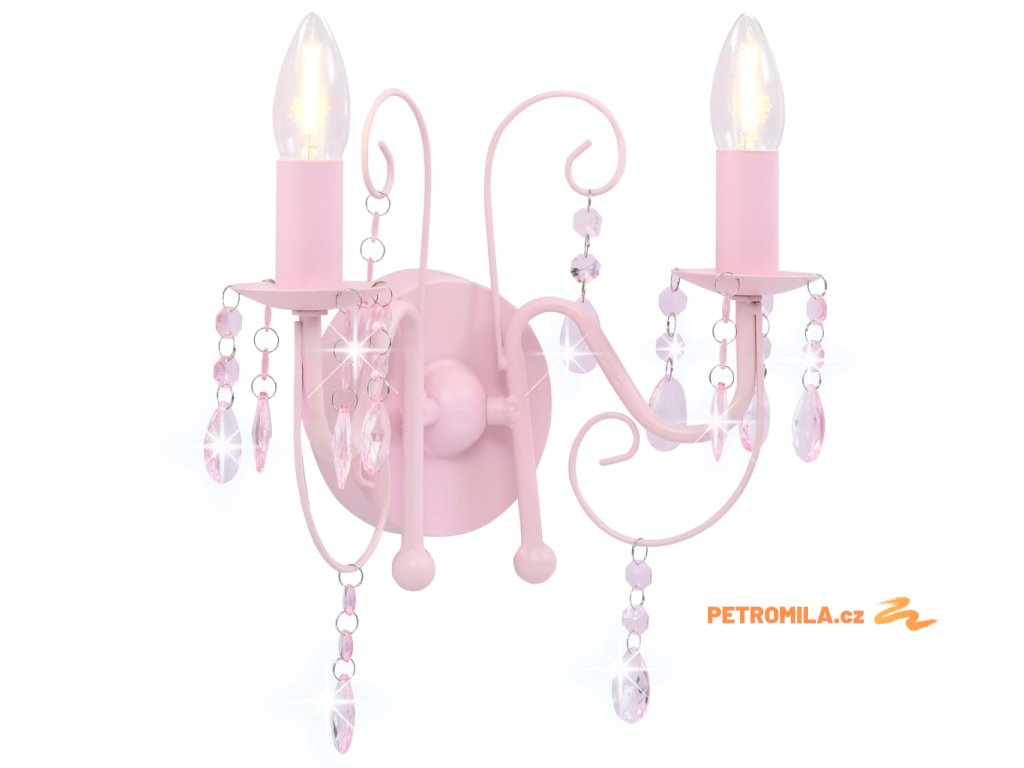 Nástěnná lampa s korálky růžová 2 x žárovka E14