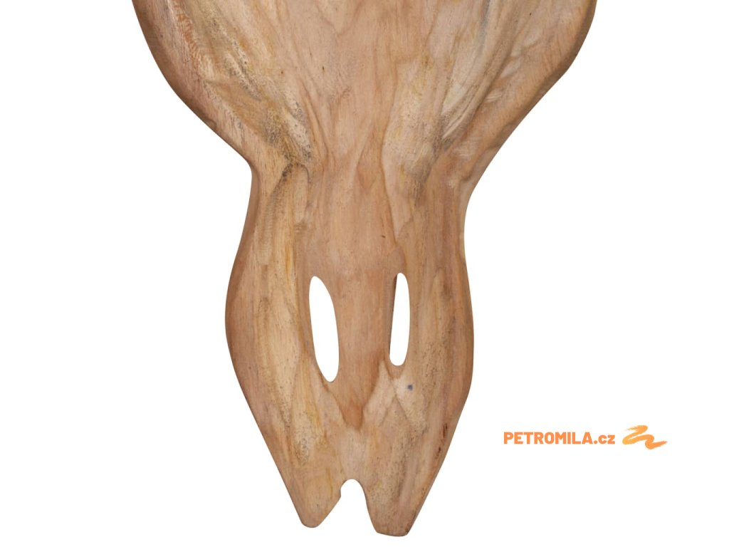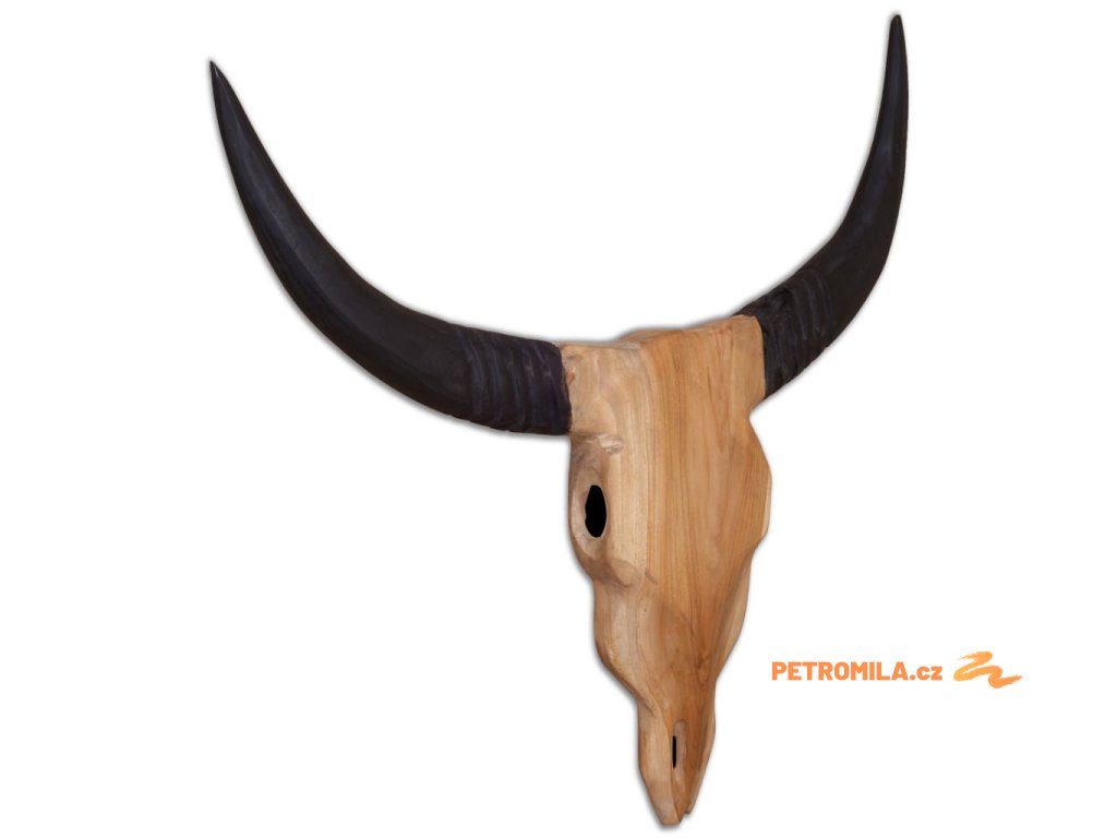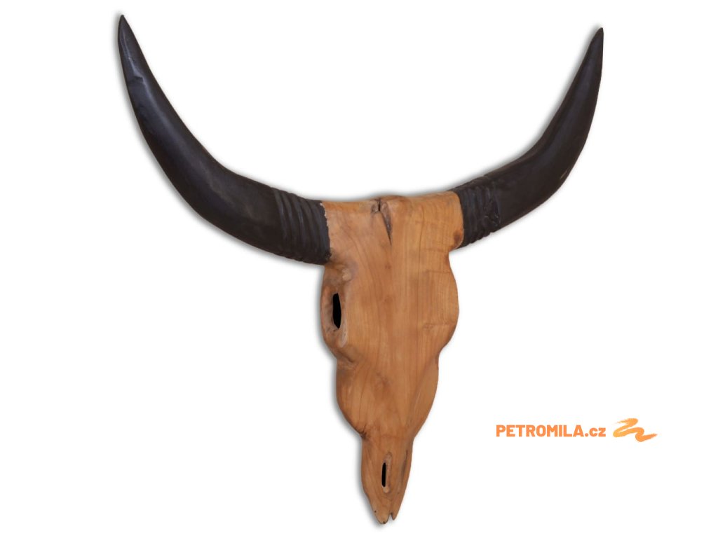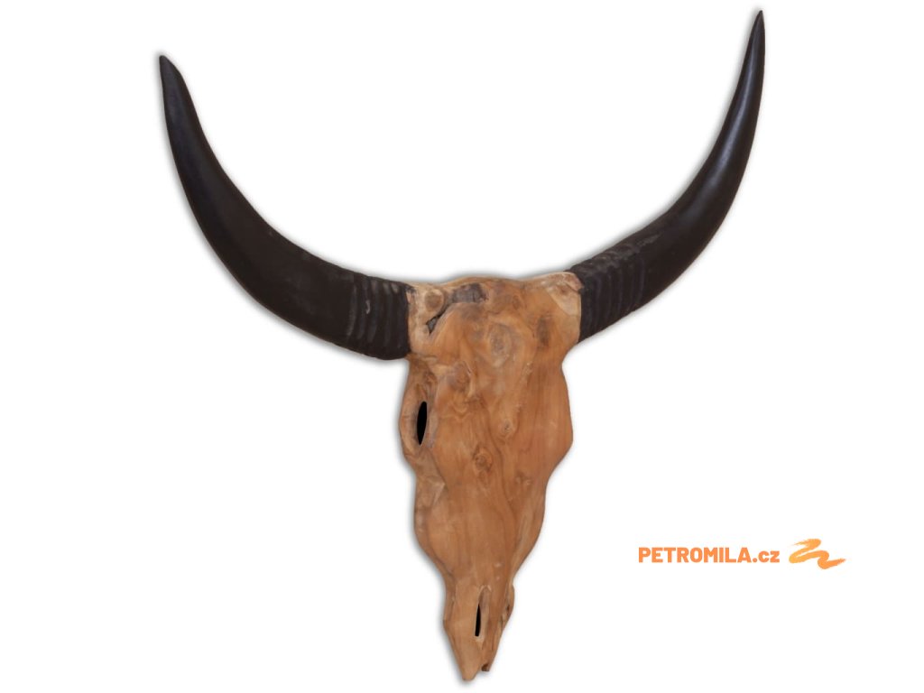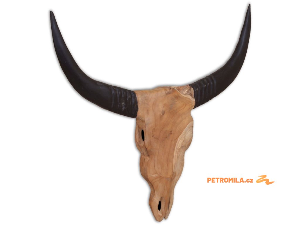Dekorace má tvar stylizované býčí lebky včetně rohů. Byla ručně vyrobena z teaku, což jí propůjčuje jedinečný rustikální vzhled.