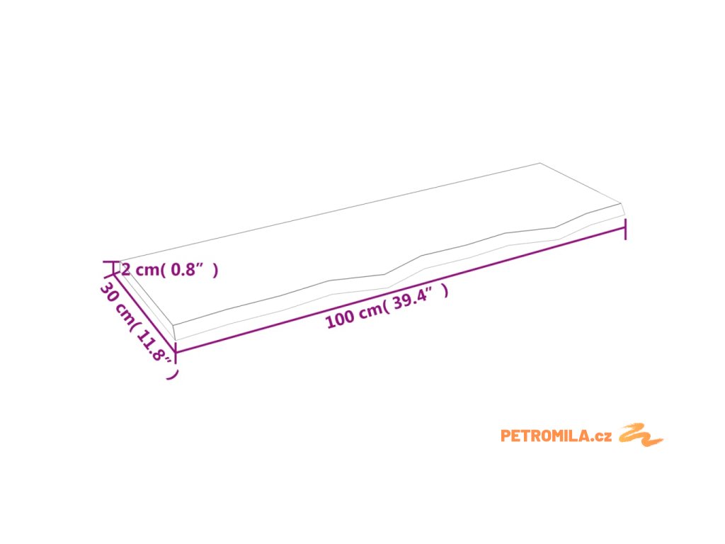 Nástěnná police 100 x 30 x 2 cm neošetřené masivní dubové dřevo