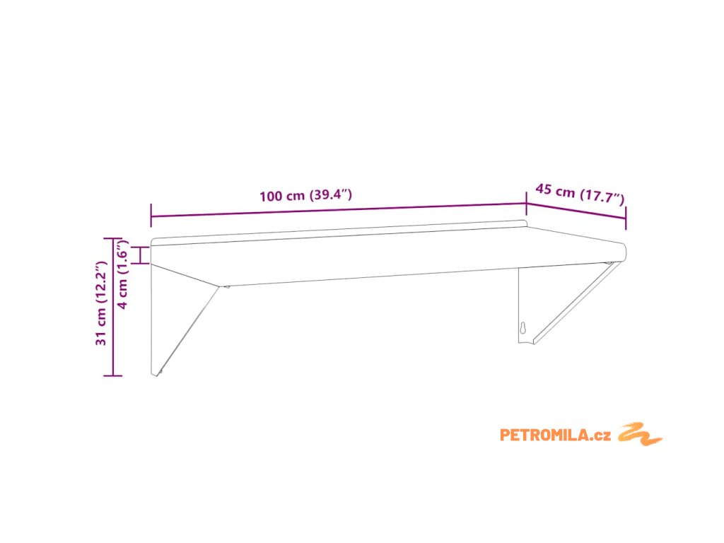 Nástěnná police 100 x 45 x 31 cm stříbrná nerezová ocel