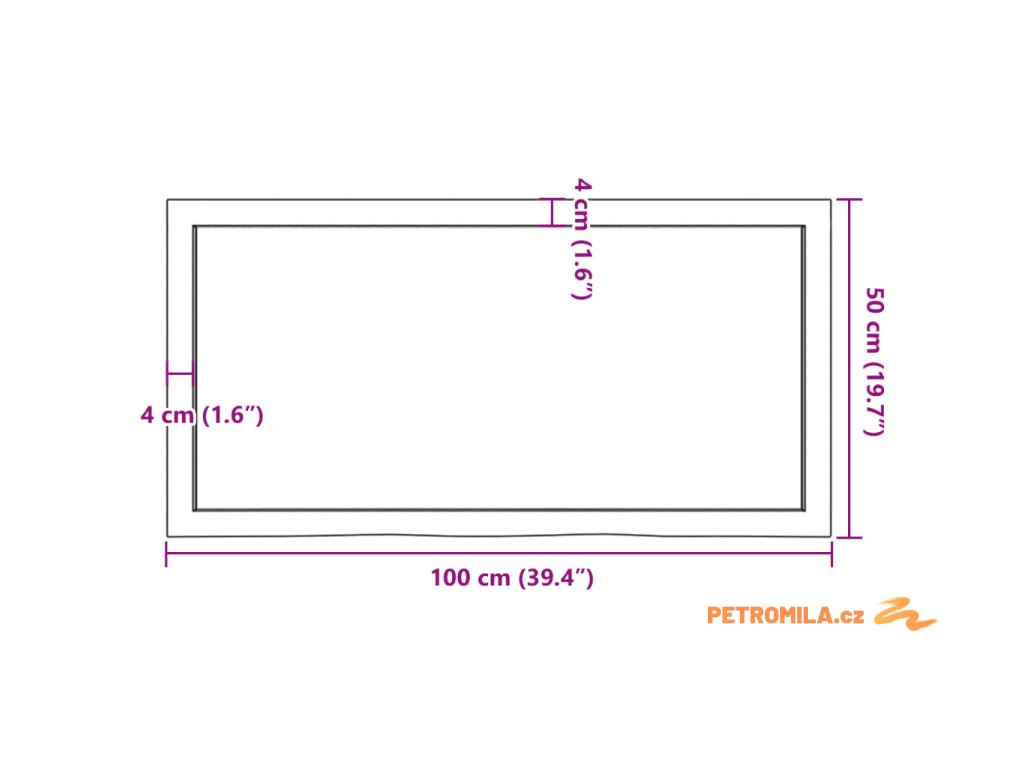 Nástěnná police 100x50x(2-4) cm neošetřené masivní dubové dřevo