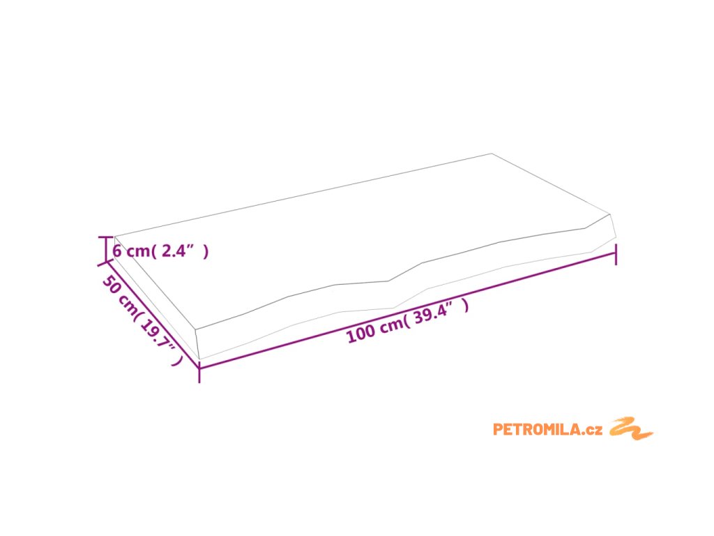 Nástěnná police 100x50x(2-6) cm neošetřené masivní dubové dřevo