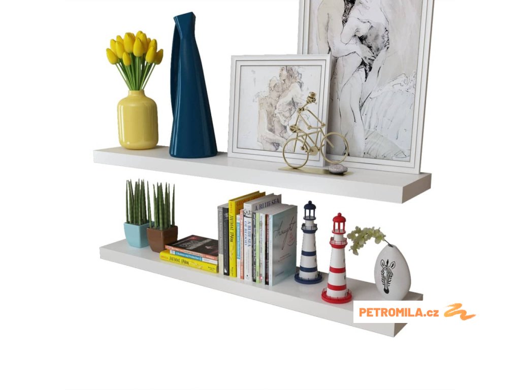 Police snadno připevníte pomocí neviditelného systému a jsou ideální pro vystavení věcí jako jsou trofeje, knihy, sbírky různých předmětů apod. Tato police skvěle zapadne do designu každého pokoje a promění jinak holou a nevýraznou zeď v dominantu místnosti! Police jsou vyrobené z vysoce kvalitních MDF desek s matnou povrchovou úpravou.