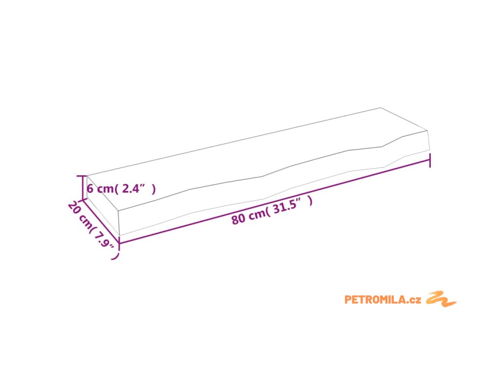 Nástěnná police 80 x 20 x 6 cm neošetřené masivní dubové dřevo