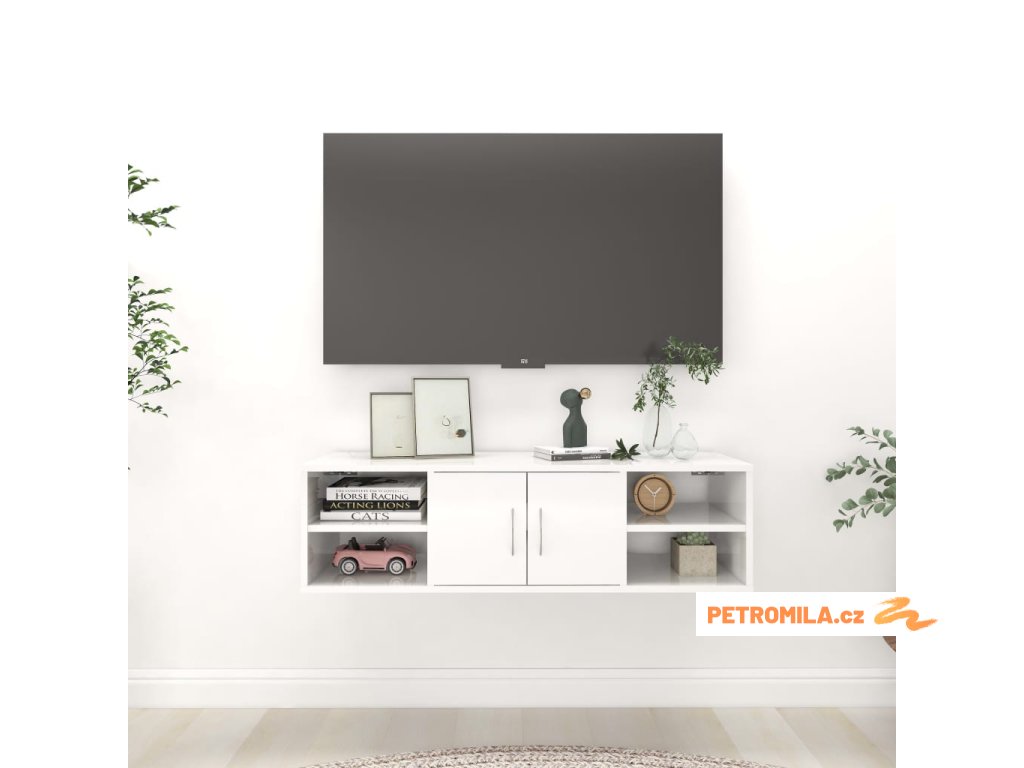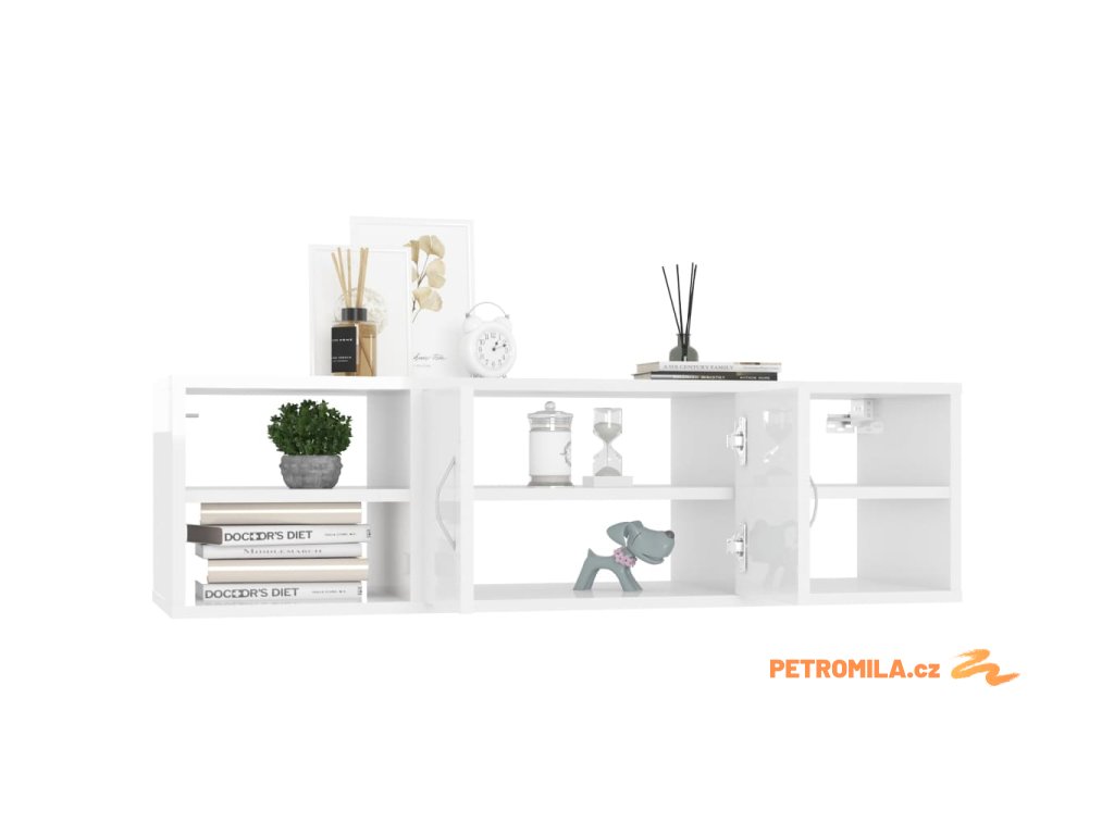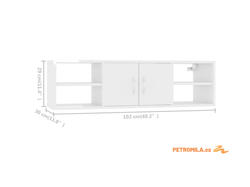 Nástěnná police bílá s vysokým leskem 102x30x29 cm dřevotříska